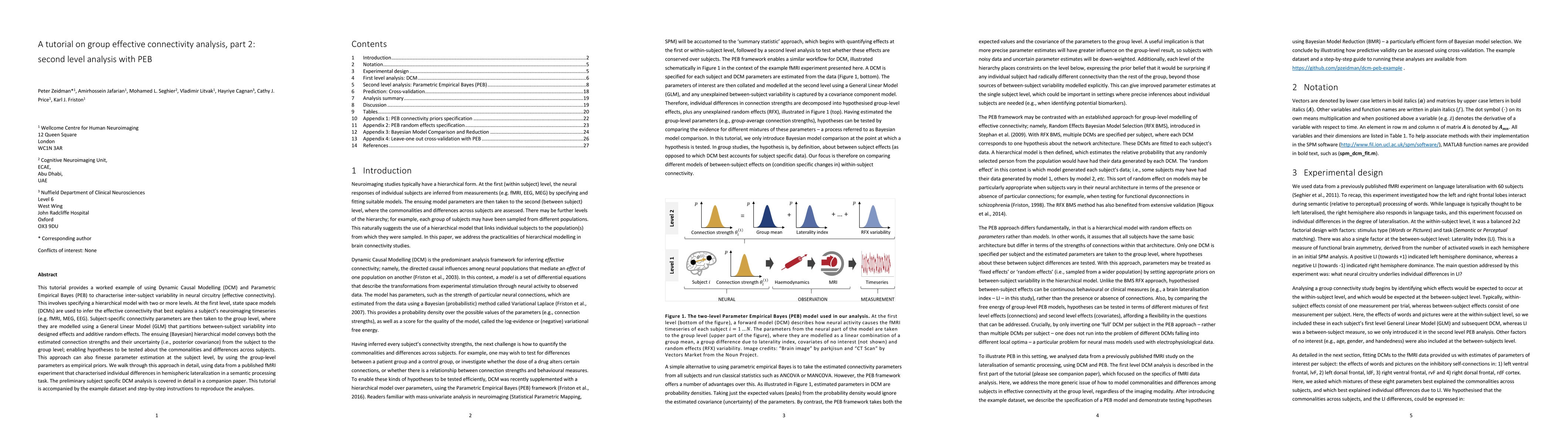This tutorial explains a method for analyzing neural circuitry connectivity using Dynamic Causal Modelling and Parametric Empirical Bayes, which identifies both commonalities and differences in brain connections across individuals.