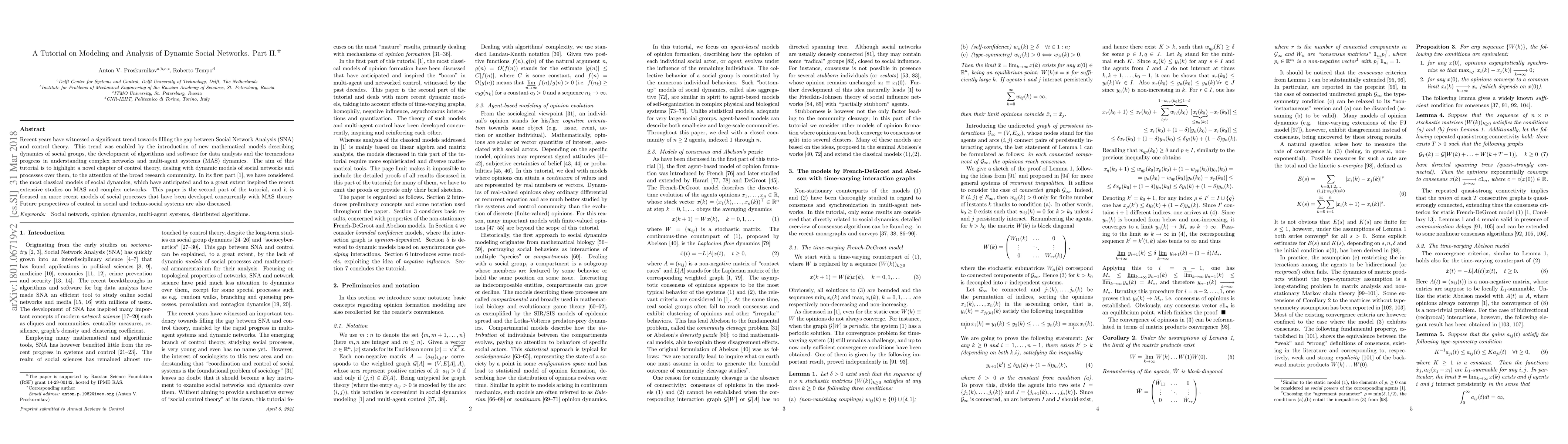 This paper is the second part of a tutorial that bridges Social Network Analysis and control theory, focusing on contemporary models of social dynamics and processes. It discusses the integration of multi-agent systems theory with dynamic social network modeling and explores future directions for control in social networks.