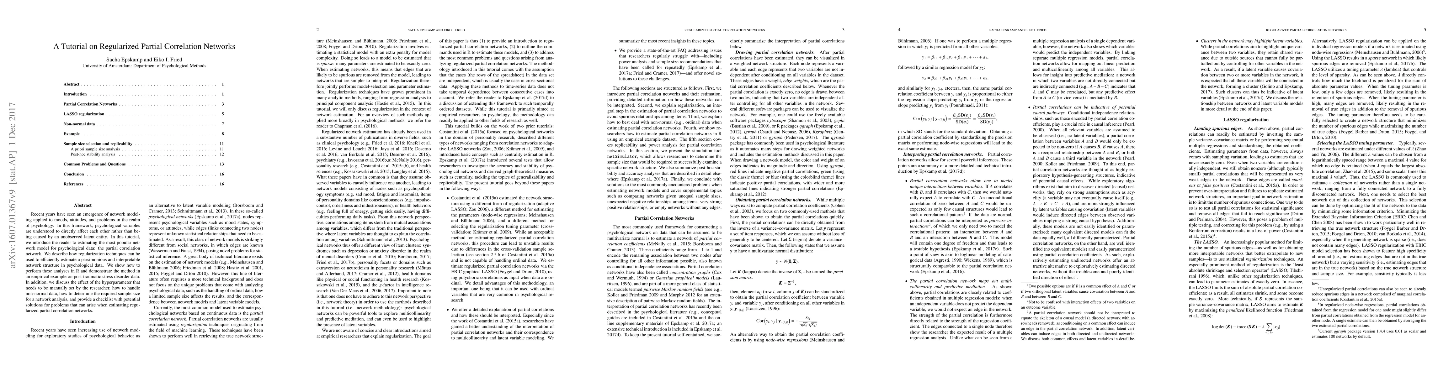 Recent years have seen an emergence of network modeling applied to moods, attitudes, and problems in the realm of psychology. In this framework, psychological variables are understood to directly affect each other rather than being caused by an unobserved latent entity. In this tutorial, we introduce the reader to estimating the most popular network model for psychological data: the partial correlation network. We describe how regularization techniques can be used to efficiently estimate a parsimonious and interpretable network structure in psychological data. We show how to perform these analyses in R and demonstrate the method in an empirical example on post-traumatic stress disorder data. In addition, we discuss the effect of the hyperparameter that needs to be manually set by the researcher, how to handle non-normal data, how to determine the required sample size for a network analysis, and provide a checklist with potential solutions for problems that can arise when estimating regularized partial correlation networks.