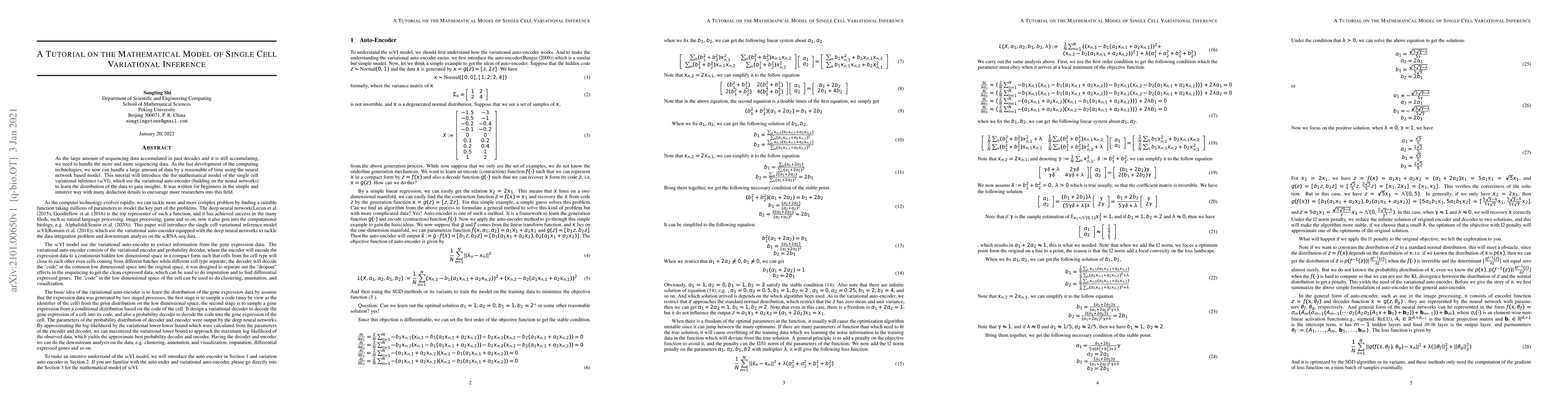This tutorial introduces the mathematical model of single cell variational inference (scVI), utilizing a variational auto-encoder based on neural networks to learn data distributions. It aims to simplify the complex concepts for beginners, encouraging more researchers to explore this field.