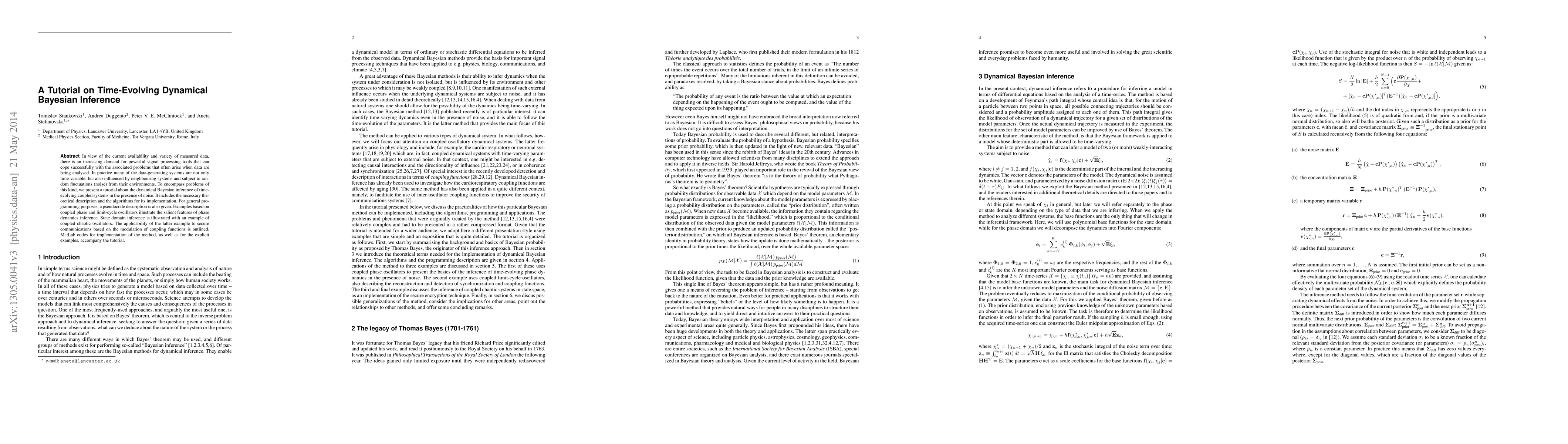 This tutorial introduces dynamical Bayesian inference for time-evolving coupled systems, addressing noise and neighbouring influences with theoretical descriptions and implementation algorithms, illustrated through examples of coupled oscillators and secure communications. Accompanying MatLab codes facilitate practical application.
