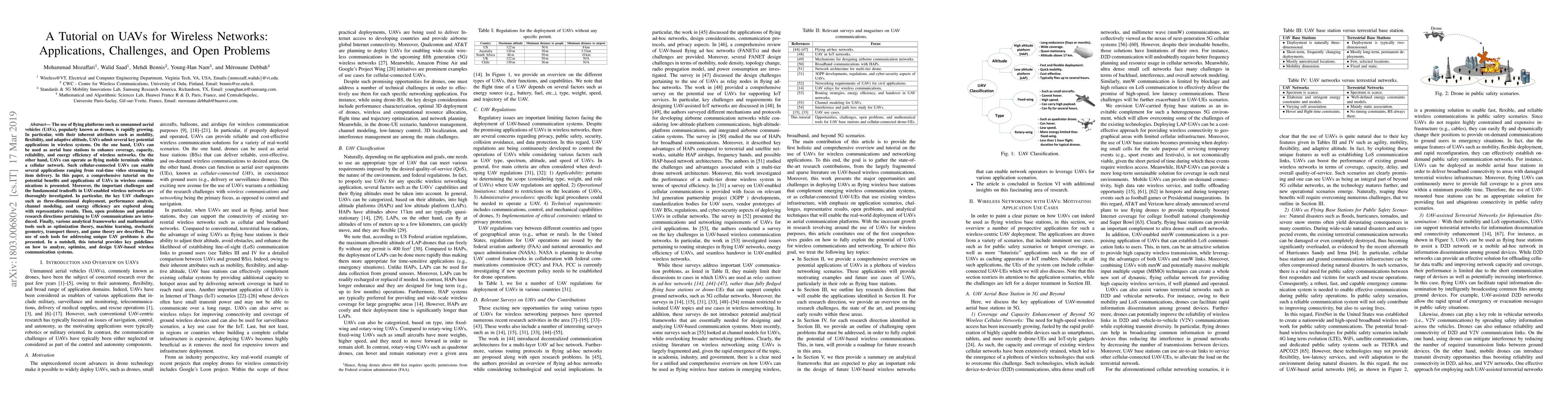 This paper offers a comprehensive tutorial on the applications, challenges, and open problems in UAV-enabled wireless networks, highlighting their potential to enhance coverage and capacity, while exploring key challenges like deployment, channel modeling, and energy efficiency. It also introduces analytical frameworks for addressing these issues.