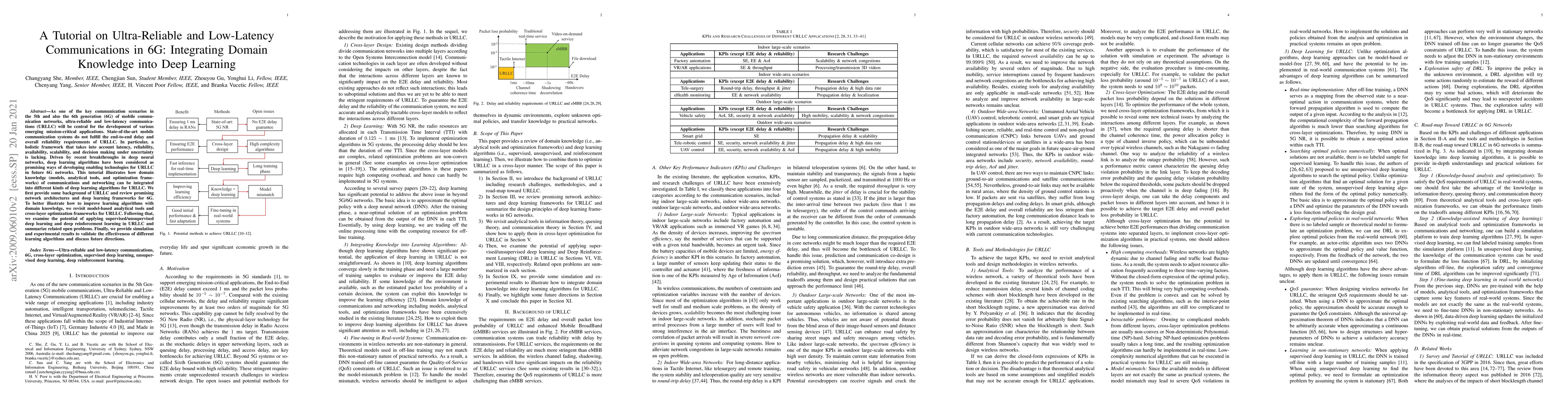 This paper provides a tutorial on integrating deep learning with domain knowledge to enhance ultra-reliable and low-latency communications (URLLC) in 6G networks. It reviews deep learning frameworks and proposes combining them with analytical tools and optimization techniques to meet URLLC requirements, highlighting potential applications and open challenges.