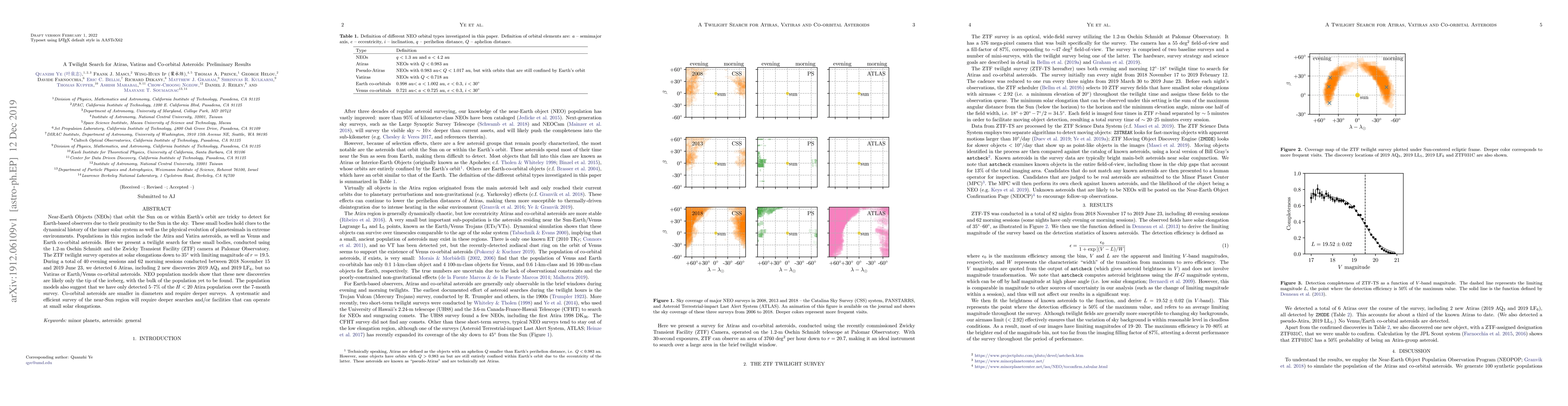 This paper reports on a twilight survey for Atiras, Vatiras, and co-orbital asteroids using the Oschin Schmidt and Zwicky Transient Facility camera, detecting 6 Atiras including 2 new discoveries. The study highlights the challenges of detecting these near-Sun objects and suggests that deeper surveys are needed to fully understand the population of these near-Earth objects.