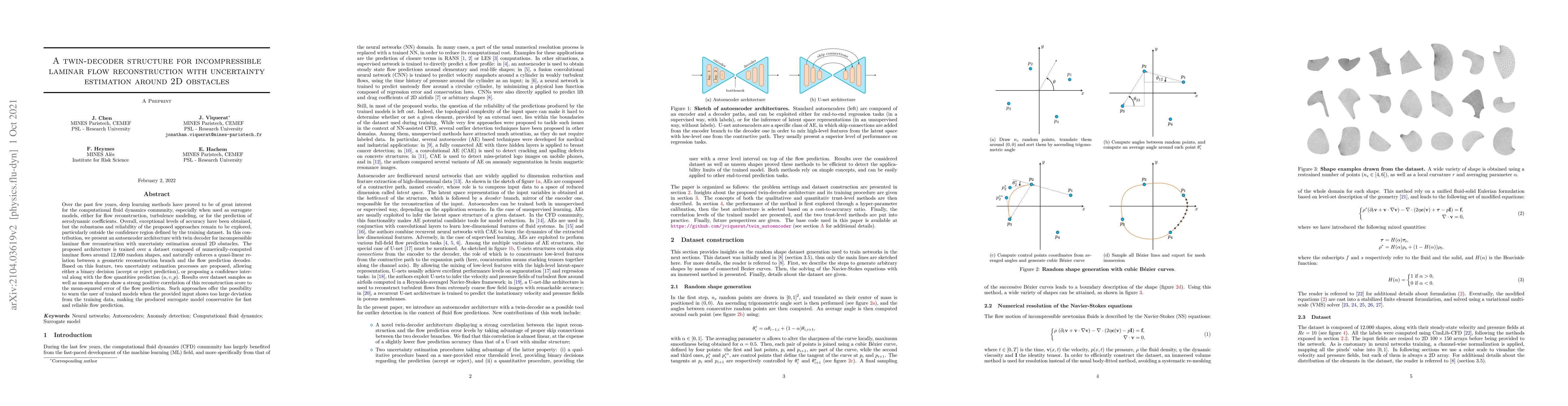 This paper proposes a twin-decoder auto-encoder network for reconstructing incompressible laminar flows around 2D obstacles, incorporating uncertainty estimation. The model demonstrates robust performance with confidence intervals and binary decision capabilities, enhancing the reliability of deep learning surrogate models in computational fluid dynamics.