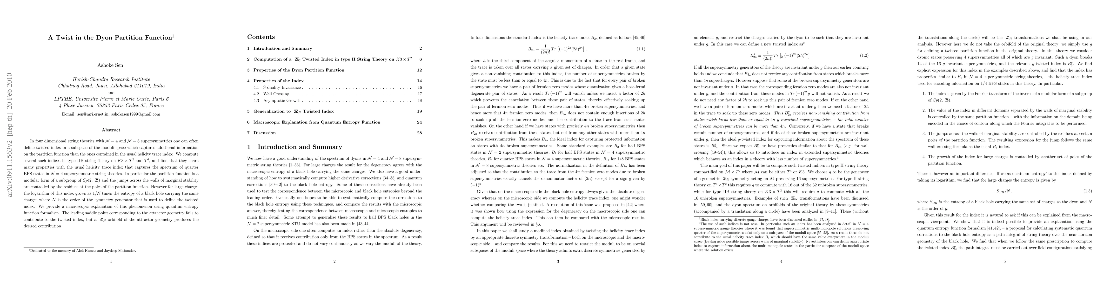 This paper computes twisted indices in type IIB string theory on various tori, revealing they share properties with the usual helicity trace index, including modular form characteristics. The logarithmic growth of these indices for large charges aligns with black hole entropy, explained via quantum entropy function formalism, where a Z_n orbifold of the attractor geometry contributes.