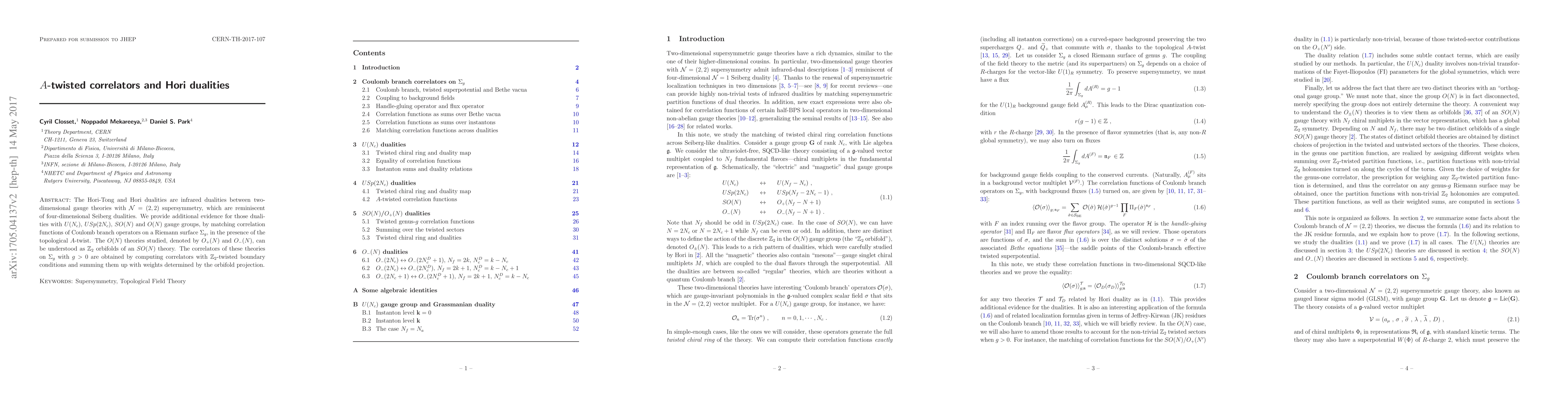 The Hori-Tong and Hori dualities are infrared dualities between two-dimensional gauge theories with $\mathcal{N}{=}(2,2)$ supersymmetry, which are reminiscent of four-dimensional Seiberg dualities. We provide additional evidence for those dualities with $U(N_c)$, $USp(2N_c)$, $SO(N)$ and $O(N)$ gauge groups, by matching correlation functions of Coulomb branch operators on a Riemann surface $\Sigma_g$, in the presence of the topological $A$-twist. The $O(N)$ theories studied, denoted by $O_+ (N)$ and $O_- (N)$, can be understood as $\mathbb{Z}_2$ orbifolds of an $SO(N)$ theory. The correlators of these theories on $\Sigma_g$ with $g > 0$ are obtained by computing correlators with $\mathbb{Z}_2$-twisted boundary conditions and summing them up with weights determined by the orbifold projection.
