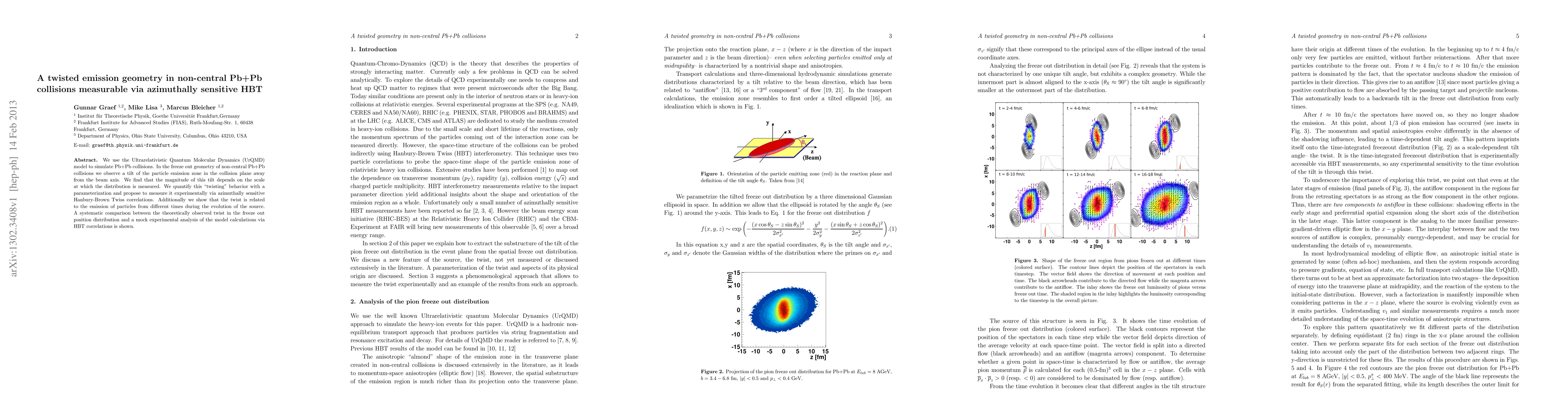 This paper uses the UrQMD model to simulate non-central Pb+Pb collisions, revealing a "twisted" emission geometry in the collision plane. The study proposes a method to measure this effect experimentally using azimuthally sensitive Hanbury-Brown Twiss correlations, linking the twist to particles emitted at different times during the source evolution.