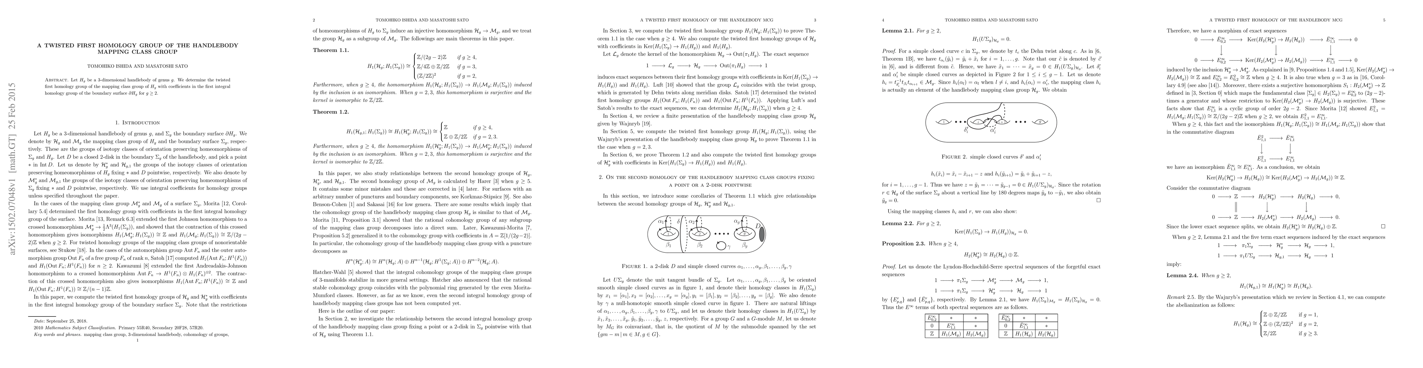 Summary: The paper determines the twisted first homology group of the mapping class group of a genus $g$ handlebody $H_{g}$, using coefficients from the first integral homology group of its boundary surface $\partial H_{g}$, for $g \geq 2$. This provides insights into the algebraic structure of the mapping class group.