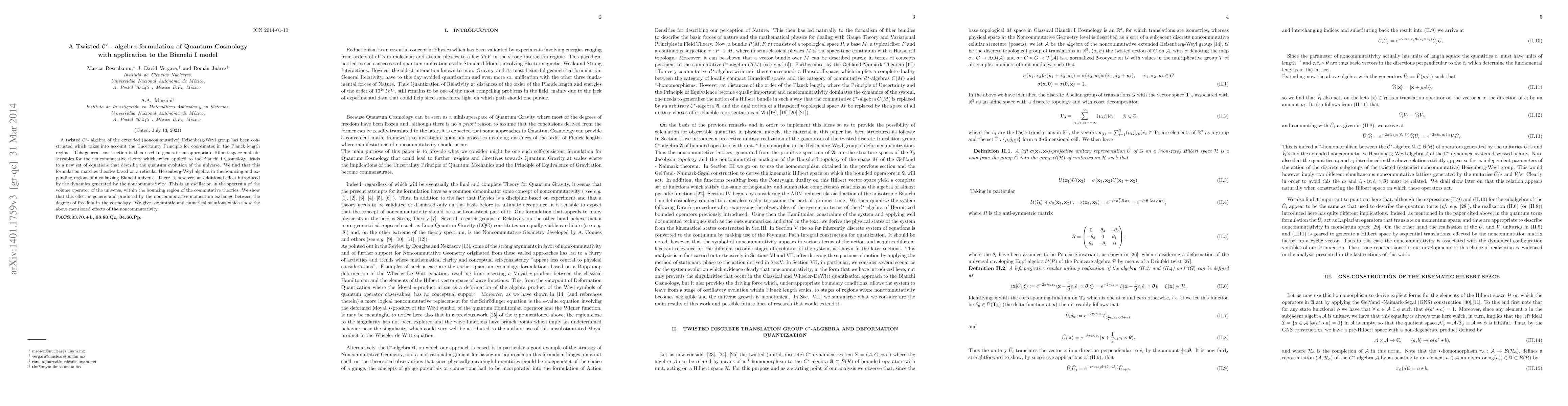 A twisted ${\mathcal C}^\star $- algebra of the extended (noncommutative) Heisenberg-Weyl group has been constructed which takes into account the Uncertainty Principle for coordinates in the Planck length regime. This general construction is then used to generate an appropriate Hilbert space and observables for the noncommutative theory which, when applied to the Bianchi I Cosmology, leads to a new set of equations that describe the quantum evolution of the universe. We find that this formulation matches theories based on a reticular Heisenberg-Weyl algebra in the bouncing and expanding regions of a collapsing Bianchi universe. There is, however, an additional effect introduced by the dynamics generated by the noncommutativity. This is an oscillation in the spectrum of the volume operator of the universe, within the bouncing region of the commutative theories. We show that this effect is generic and produced by the noncommutative momentum exchange between the degrees of freedom in the cosmology. We give asymptotic and numerical solutions which show the above mentioned effects of the noncommutativity.
