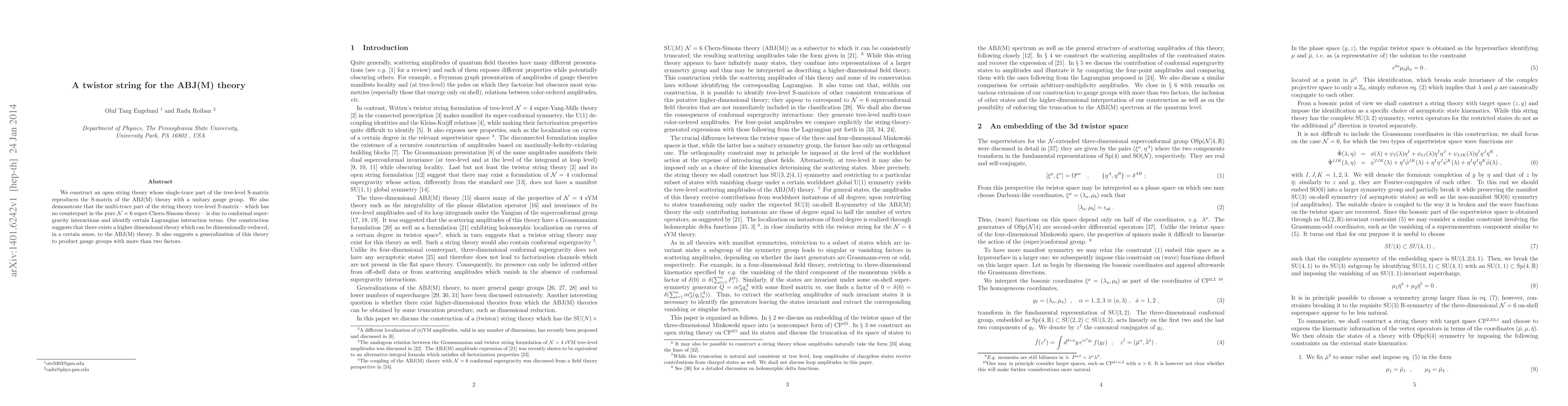 We construct an open string theory whose single-trace part of the tree-level S-matrix reproduces the S-matrix of the ABJ(M) theory with a unitary gauge group. We also demonstrate that the multi-trace part of the string theory tree-level S-matrix {which has no counterpart in the pure N = 6 super-Chern-Simons theory {is due to conformal supergravity interactions and identify certain Lagrangian interaction terms. Our construction suggests that there exists a higher dimensional theory which can be dimensionally-reduced, in a certain sense, to the ABJ(M) theory. It also suggests a generalization of this theory to product gauge groups with more than two factors.