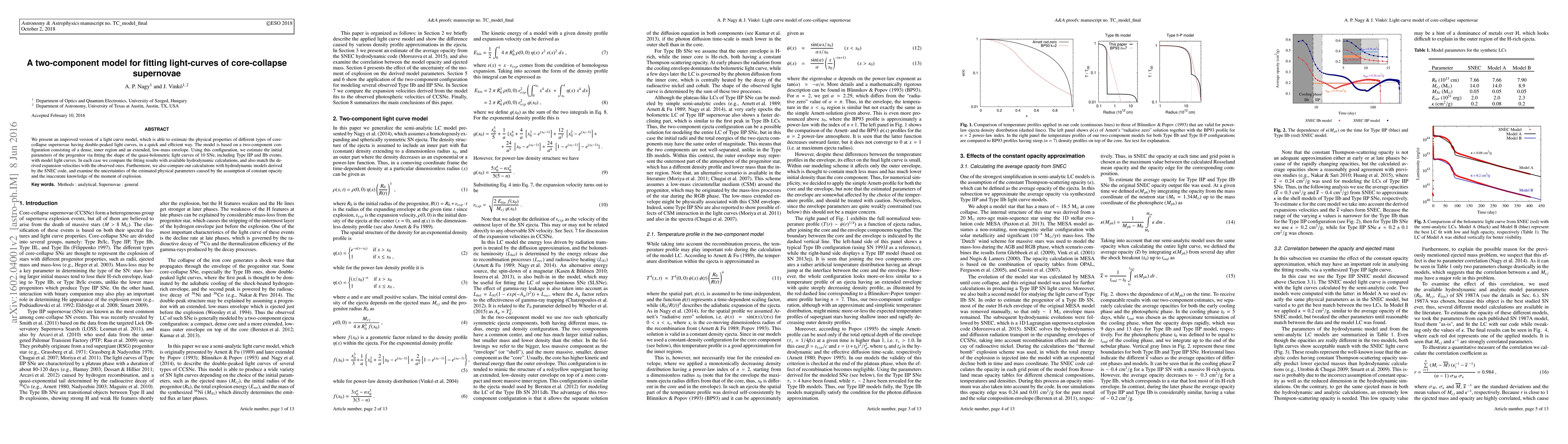 A new light-curve model predicts physical properties of core-collapse supernovae with double-peaked curves, using a two-component configuration that matches observed quasi-bolometric light curves and expansion velocities.
