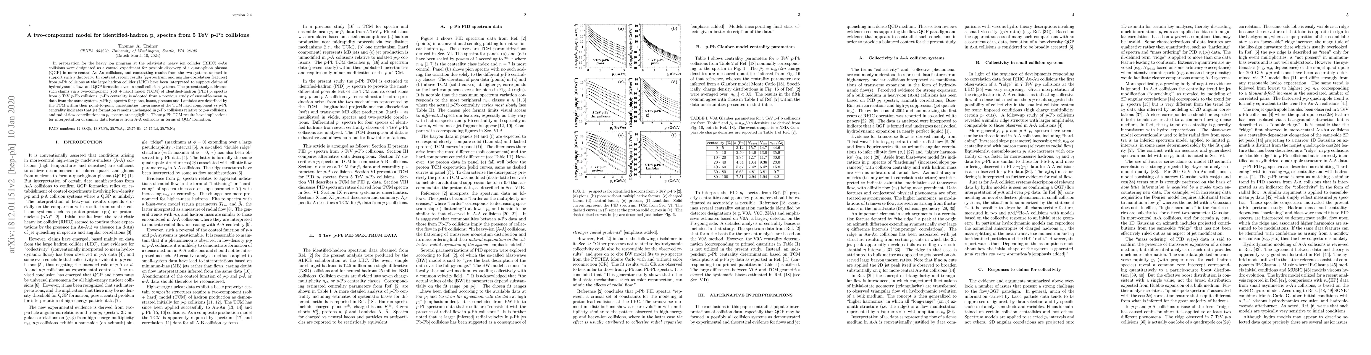In preparation for the heavy ion program at the relativistic heavy ion collider (RHIC) $d$-Au collisions were designated as a control experiment for possible discovery of a quark-gluon plasma (QGP) in more-central Au-Au collisions, and contrasting results from the two systems seemed to support such a discovery. In contrast, recent results ($p_t$-spectrum and angular-correlation features) from $p$-Pb collisions at the large hadron collider (LHC) have been interpreted to support claims of hydrodynamic flows and QGP formation even in small collision systems. The present study addresses such claims via a two-component (soft + hard) model (TCM) of identified-hadron (PID) $p_t$ spectra from 5 TeV $p$-Pb collisions. $p$-Pb centrality is adopted from a previous study of ensemble-mean $\bar p_t$ data from the same system. $p$-Pb $p_t$ spectra for pions, kaons, protons and Lambdas are described by the TCM within their point-to-point uncertainties. Invariance of the TCM hard component vs $p$-Pb centrality indicates that jet formation remains unchanged in $p$-Pb collisions relative to $p$-$p$ collisions, and radial-flow contributions to spectra are negligible. These $p$-Pb TCM results have implications for interpretation of similar data features from A-A collisions in terms of QGP formation.