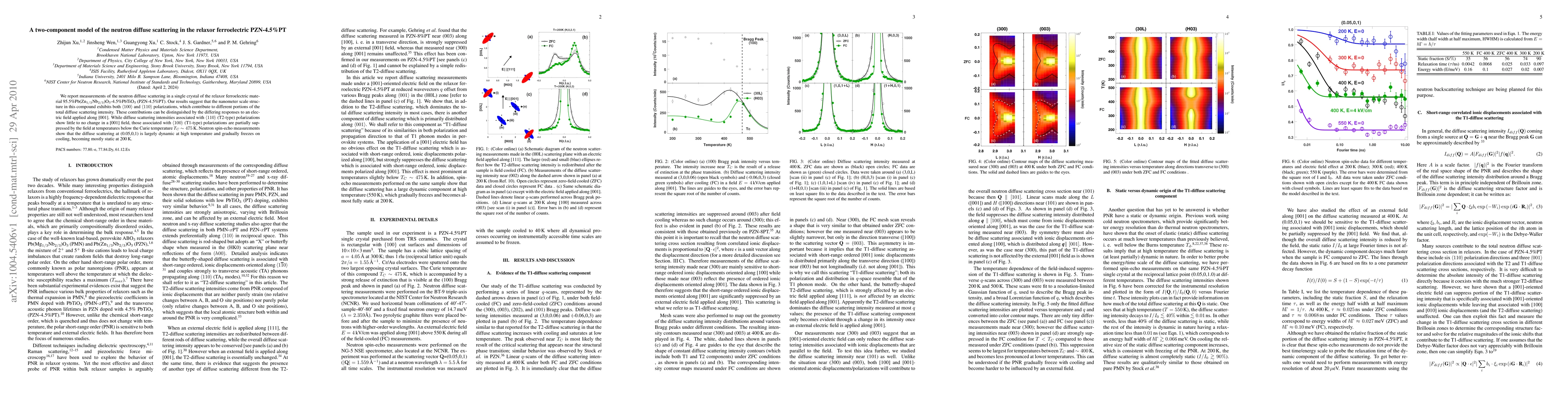 This study investigates the neutron diffuse scattering in PZN-4.5%PT, revealing two distinct polarization components contributing to the scattering intensity. The T1-type polarizations along <100> are partially suppressed by an electric field, while T2-type polarizations along <110> remain largely unaffected, indicating different dynamic behaviors.