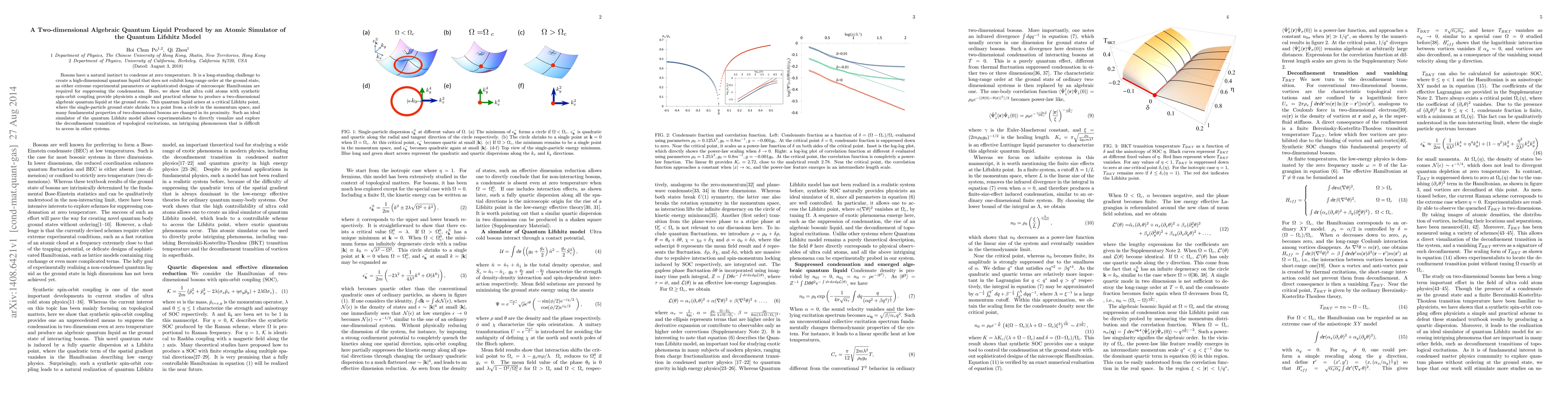 Bosons have a natural instinct to condense at zero temperature. It is a long-standing challenge to create a high-dimensional quantum liquid that does not exhibit long-range order at the ground state, as either extreme experimental parameters or sophisticated designs of microscopic Hamiltonian are required for suppressing the condensation. Here, we show that ultra cold atoms with synthetic spin-orbit coupling provide physicists a simple and practical scheme to produce a two-dimensional algebraic quantum liquid at the ground state. This quantum liquid arises at a critical Lifshitz point, where the single-particle ground state shrinks to a point from a circle in the momentum space, and many fundamental properties of two-dimensional bosons are changed in its proximity. Such an ideal simulator of the quantum Lifshitz model allows experimentalists to directly visualize and explore the deconfinement transition of topological excitations, an intriguing phenomenon that is difficult to access in other systems.