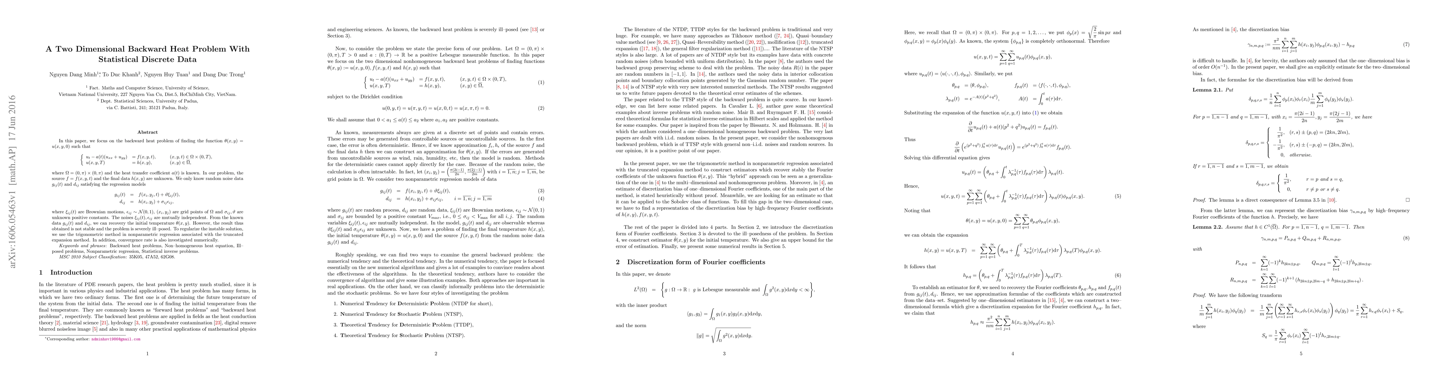 Researchers developed a method to estimate initial temperature in a 2D heat problem using noisy data, but found the solution unstable due to ill-posedness; they used trigonometric methods to regularize the result.
