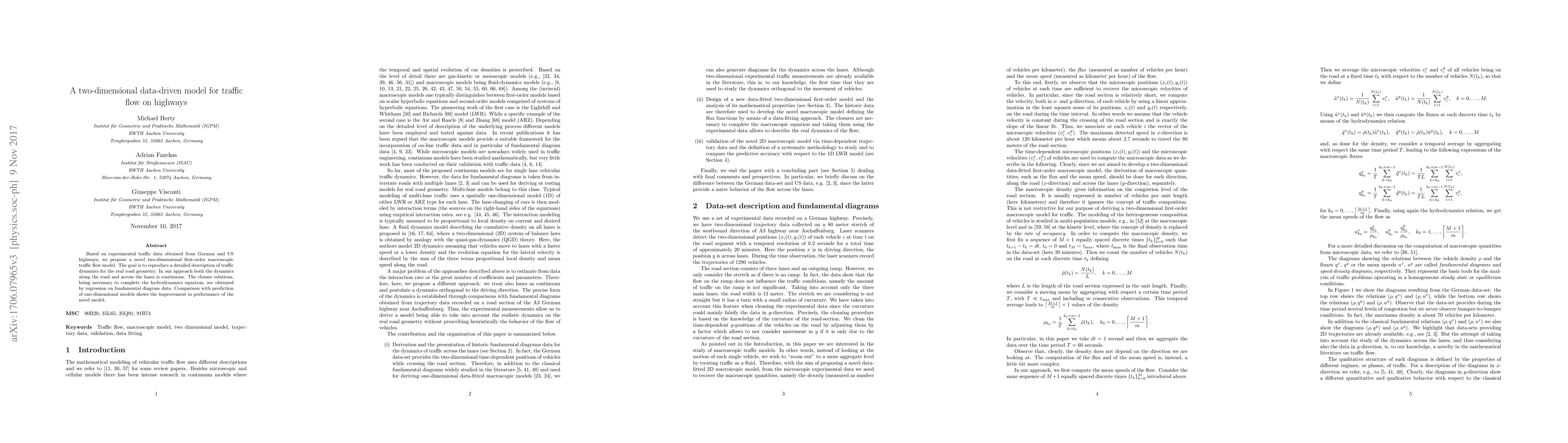 Based on experimental traffic data obtained from German and US highways, we propose a novel two-dimensional first-order macroscopic traffic flow model. The goal is to reproduce a detailed description of traffic dynamics for the real road geometry. In our approach both the dynamic along the road and across the lanes is continuous. The closure relations, being necessary to complete the hydrodynamic equation, are obtained by regression on fundamental diagram data. Comparison with prediction of one-dimensional models shows the improvement in performance of the novel model.