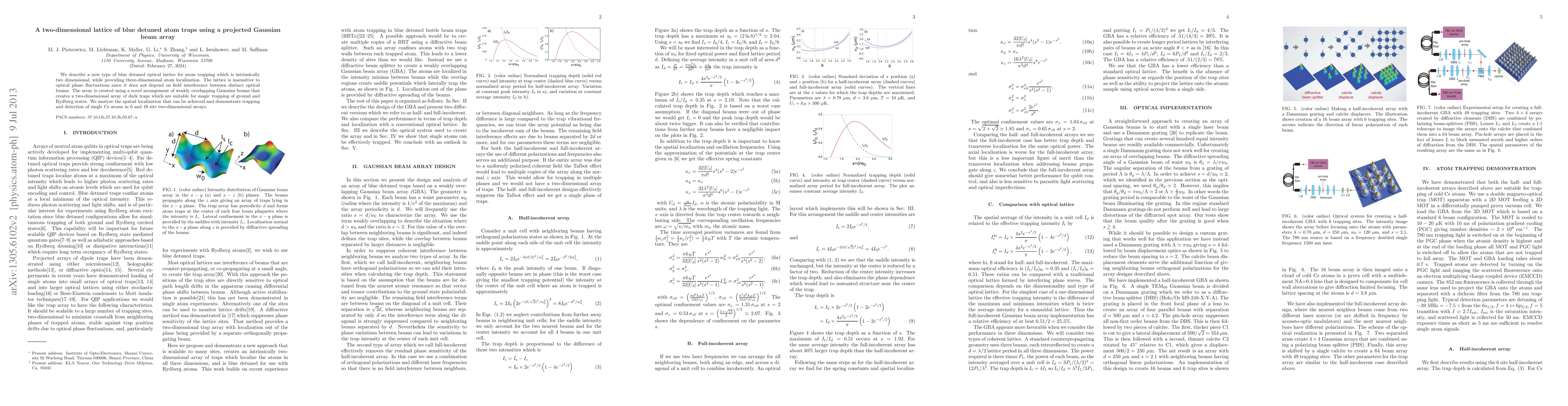This research introduces a novel two-dimensional optical lattice for atom trapping, utilizing a projected Gaussian beam array. It ensures insensitivity to phase fluctuations and demonstrates single Cs atom trapping and detection in 6 and 49 site arrays, showcasing potential for magic trapping of ground and Rydberg states.