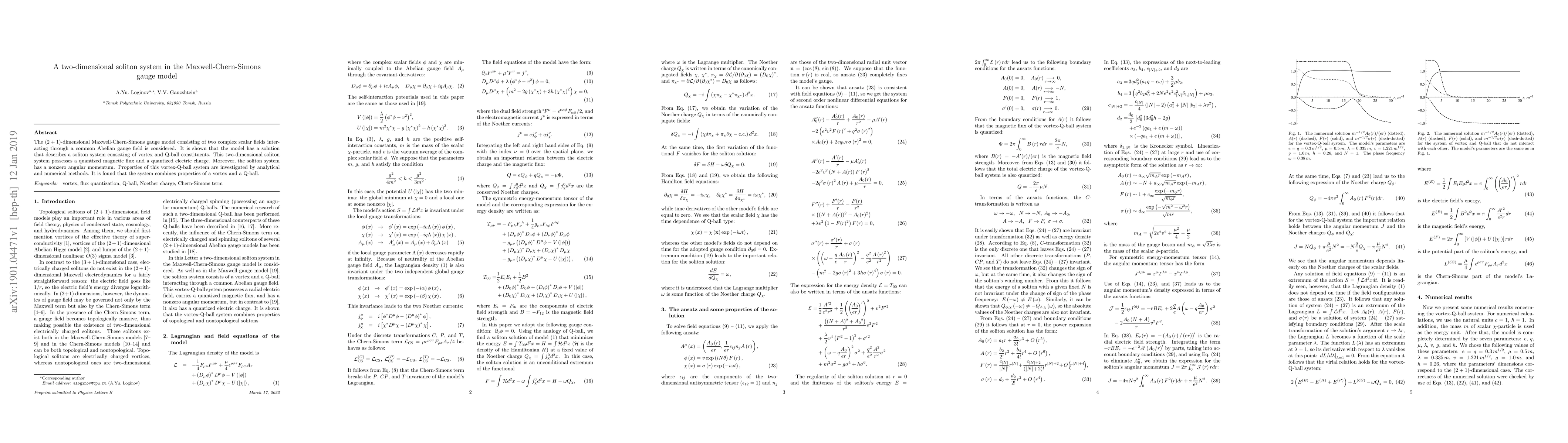 The (2 + 1)-dimensional Maxwell-Chern-Simons gauge model consisting of two complex scalar fields interacting through a common Abelian gauge field is considered. It is shown that the model has a solution that describes a soliton system consisting of vortex and Q-ball constituents. This two-dimensional soliton system possesses a quantized magnetic flux and a quantized electric charge. Moreover, the soliton system has a nonzero angular momentum. Properties of this vortex-Q-ball system are investigated by analytical and numerical methods. It is found that the system combines properties of a vortex and a Q-ball.