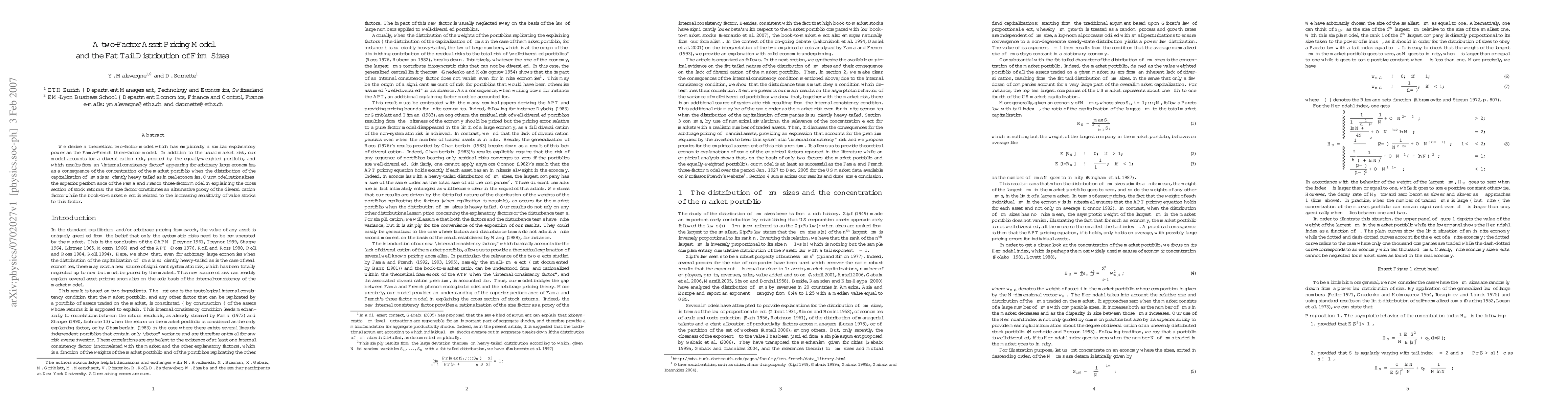 In the standard equilibrium and/or arbitrage pricing framework, the value of any asset is uniquely specified from the belief that only the systematic risks need to be remunerated by the market. Here, we show that, even for arbitrary large economies when the distribution of the capitalization of firms is sufficiently heavy-tailed as is the case of real economies, there may exist a new source of significant systematic risk, which has been totally neglected up to now but must be priced by the market. This new source of risk can readily explain several asset pricing anomalies on the sole basis of the internal-consistency of the market model. For this, we derive a theoretical two-factor model for asset pricing which has empirically a similar explanatory power as the Fama-French three-factor model. In addition to the usual market risk, our model accounts for a diversification risk, proxied by the equally-weighted portfolio, and which results from an ``internal consistency factor'' appearing for arbitrary large economies, as a consequence of the concentration of the market portfolio when the distribution of the capitalization of firms is sufficiently heavy-tailed as in real economies. Our model rationalizes the superior performance of the Fama and French three-factor model in explaining the cross section of stock returns: the size factor constitutes an alternative proxy of the diversification factor while the book-to-market effect is related to the increasing sensitivity of value stocks to this factor.