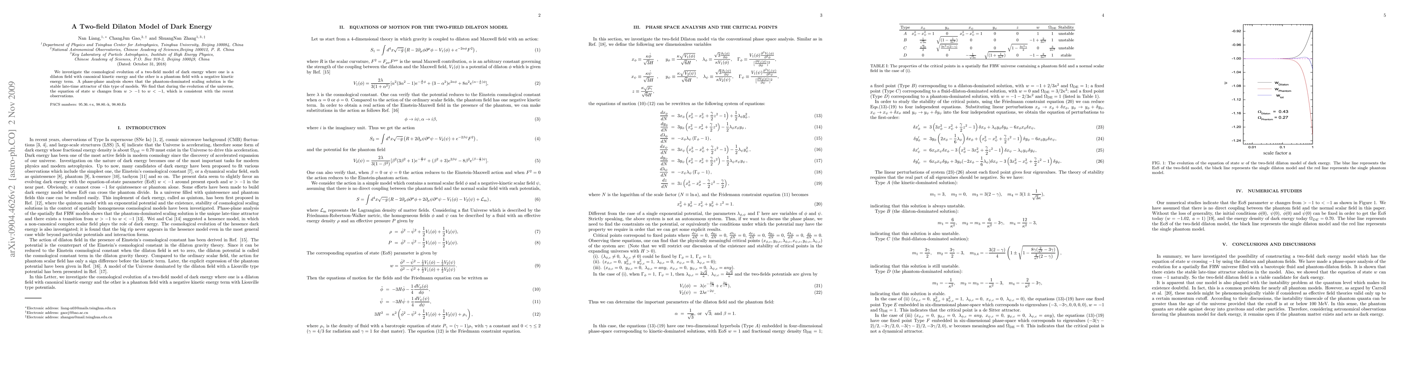 We investigate the cosmological evolution of a two-field model of dark energy where one is a dilaton field with canonical kinetic energy and the other is a phantom field with a negative kinetic energy term. A phase-plane analysis shows that the phantom-dominated scaling solution is the stable late-time attractor of this type of models. We find that during the evolution of the universe, the equation of state $w$ changes from $w > -1$ to $w <-1$, which is consistent with the recent observations.