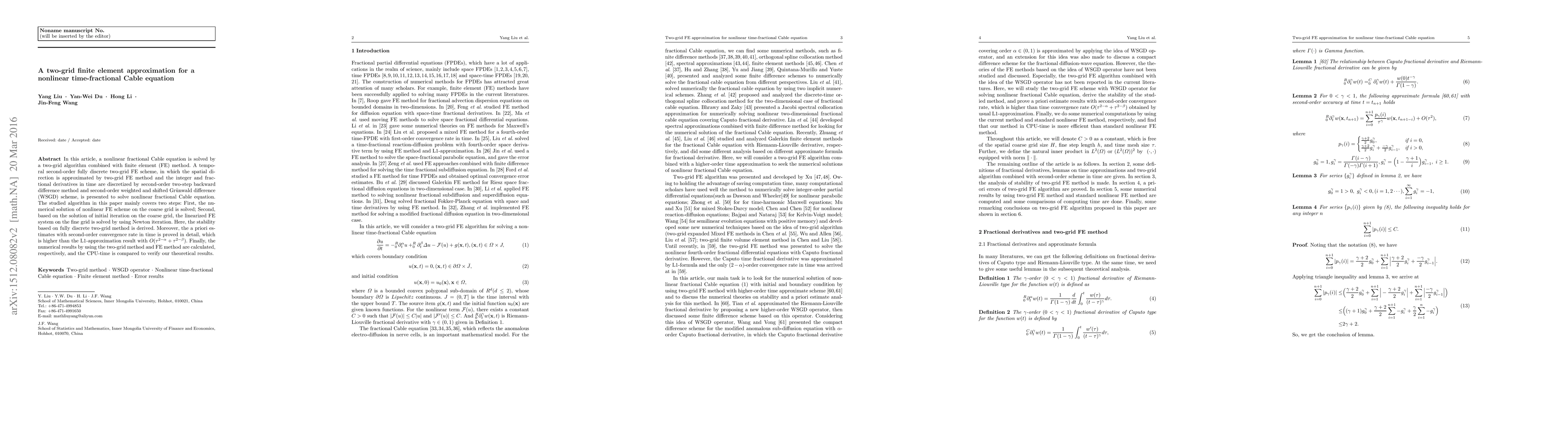 This paper proposes a two-grid finite element method for solving a nonlinear time-fractional Cable equation. The method combines a temporal second-order scheme with a two-grid approach, achieving second-order convergence and demonstrating efficiency through computational results.