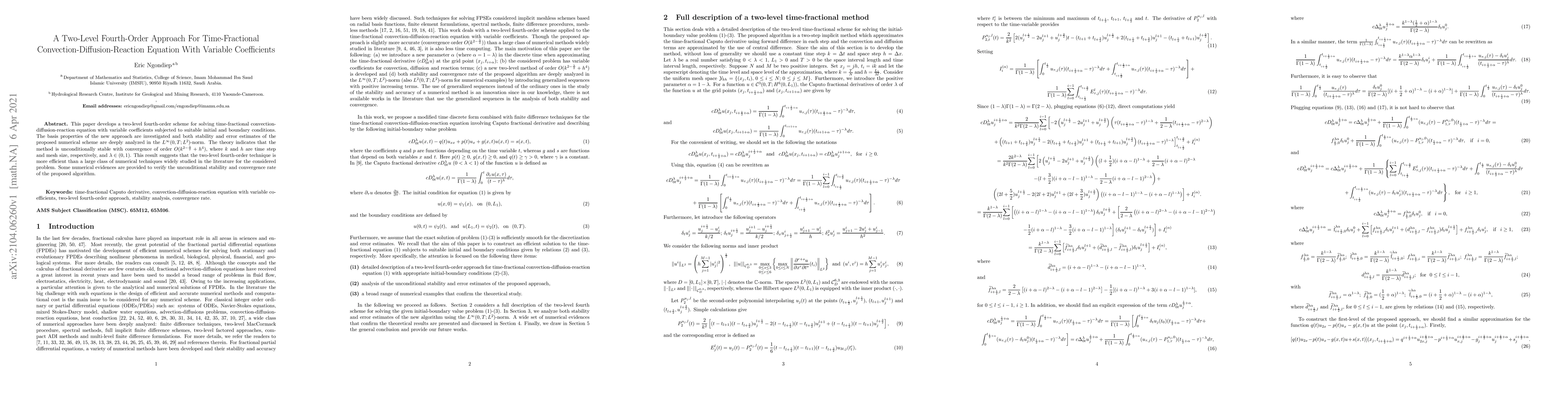 This paper proposes a two-level fourth-order numerical scheme for solving time-fractional convection-diffusion-reaction equations with variable coefficients. The method is shown to be unconditionally stable with convergence order $O(k^{2-\frac{\lambda}{2}}+h^{4})$, demonstrating superior efficiency compared to existing techniques.