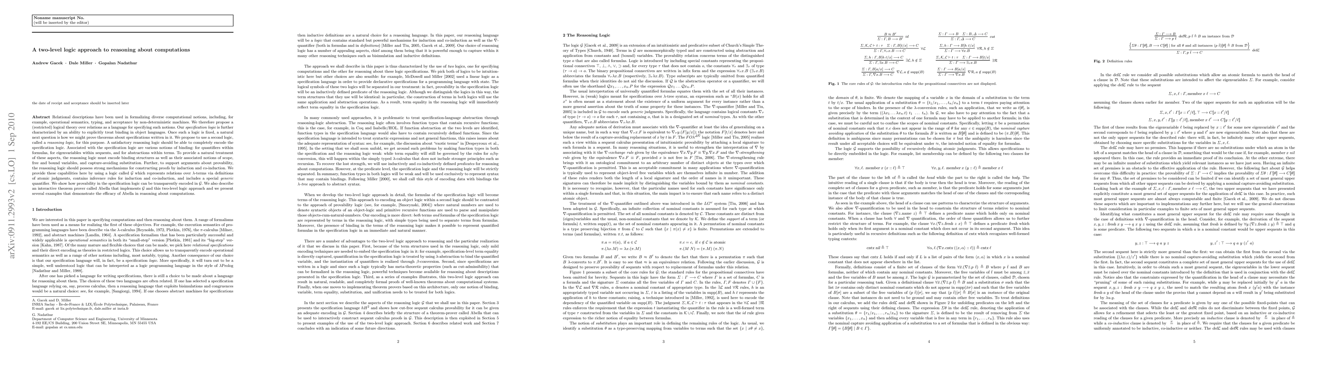 Researchers propose a two-level logic approach to formalizing computational concepts using relational descriptions and a secondary reasoning logic called G for provability, enabling transparent encoding of theorem provability and the development of an interactive theorem prover.