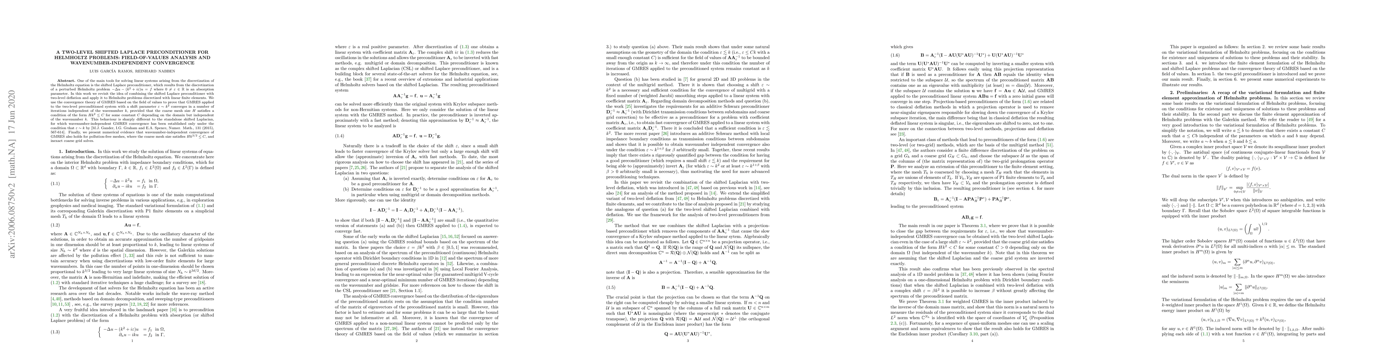 This paper proposes a two-level shifted Laplace preconditioner for solving Helmholtz problems discretized with linear finite elements, demonstrating wavenumber-independent convergence for GMRES. This approach improves upon standalone shifted Laplacian methods by achieving independent convergence under a coarse mesh condition $Hk^{2} \leq C$.