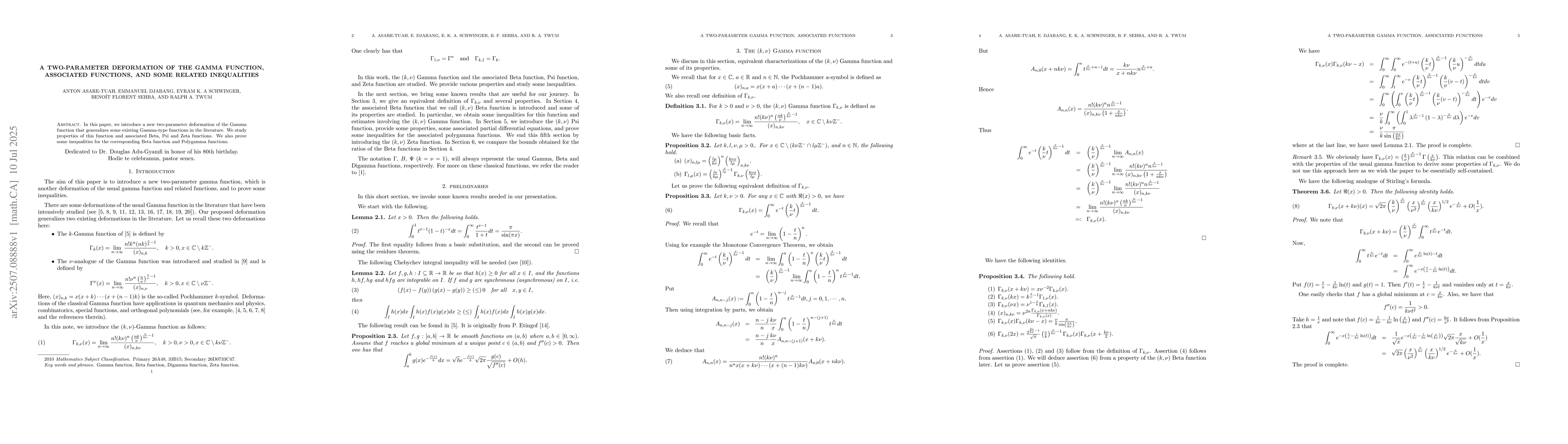 In this paper, we introduce a new two-parameter deformation of the Gamma function that generalizes some existing Gamma-type functions in the literature. We study properties of this function and associated Beta, Psi and Zeta functions. We also prove some inequalities for the corresponding Beta function and Polygamma functions.
