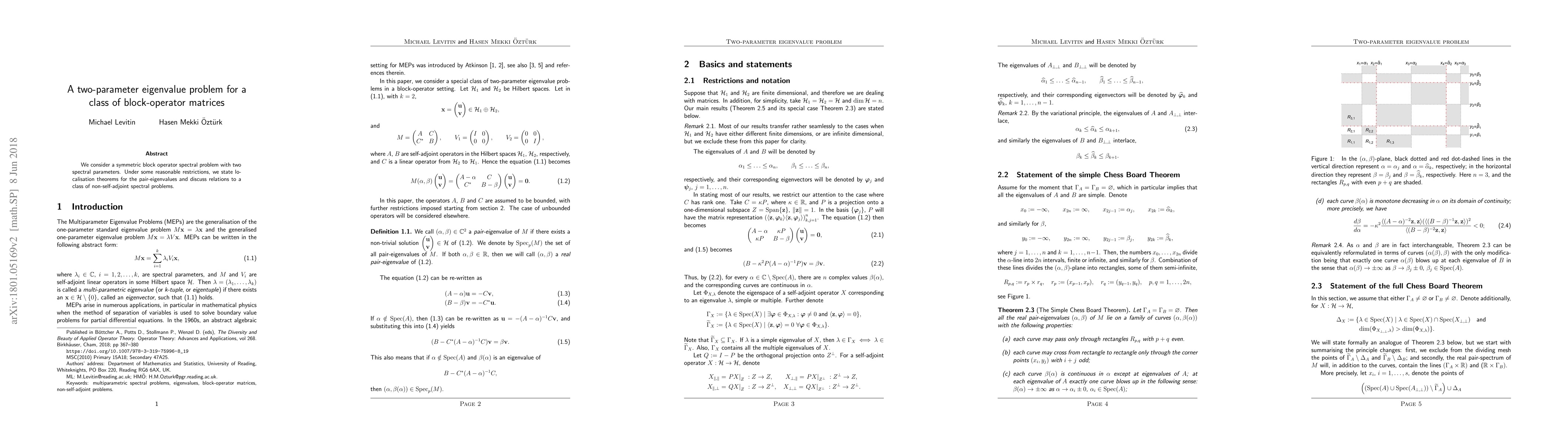 Summary: This paper investigates a symmetric block operator spectral problem involving two spectral parameters, presenting localization theorems for the pair-eigenvalues and exploring connections to non-self-adjoint spectral problems under certain conditions.