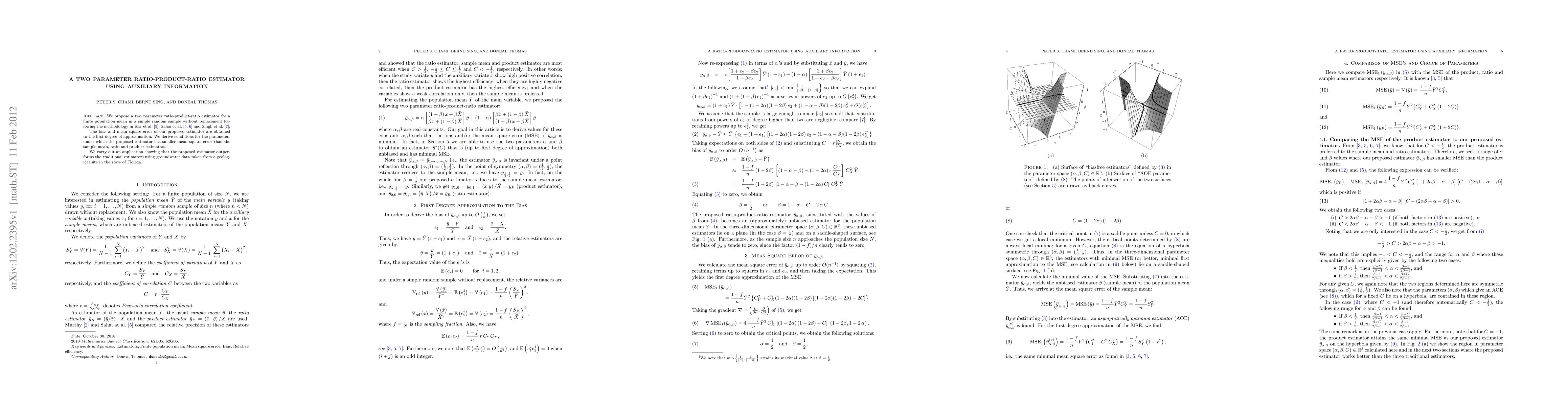 This paper proposes a new two parameter ratio-product-ratio estimator for estimating a finite population mean, demonstrating its smaller mean square error compared to traditional estimators. The study applies the estimator to groundwater data from Florida, showing its superior performance.