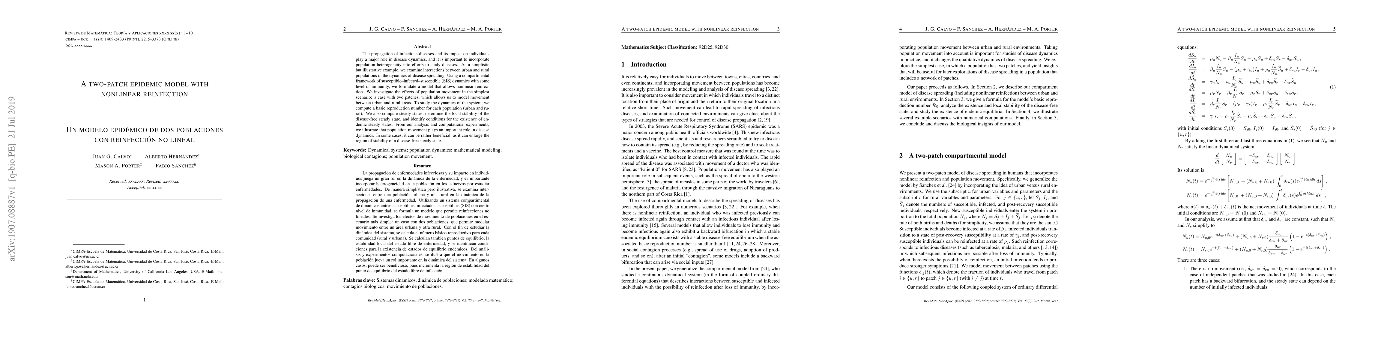 The propagation of infectious diseases and its impact on individuals play a major role in disease dynamics, and it is important to incorporate population heterogeneity into efforts to study diseases. As a simplistic but illustrative example, we examine interactions between urban and rural populations in the dynamics of disease spreading. Using a compartmental framework of susceptible--infected--susceptible ($\mathrm{SI\widetilde{S}}$) dynamics with some level of immunity, we formulate a model that allows nonlinear reinfection. We investigate the effects of population movement in the simplest scenario: a case with two patches, which allows us to model movement between urban and rural areas. To study the dynamics of the system, we compute a basic reproduction number for each population (urban and rural). We also compute steady states, determine the local stability of the disease-free steady state, and identify conditions for the existence of endemic steady states. From our analysis and computational experiments, we illustrate that population movement plays an important role in disease dynamics. In some cases, it can be rather beneficial, as it can enlarge the region of stability of a disease-free steady state.