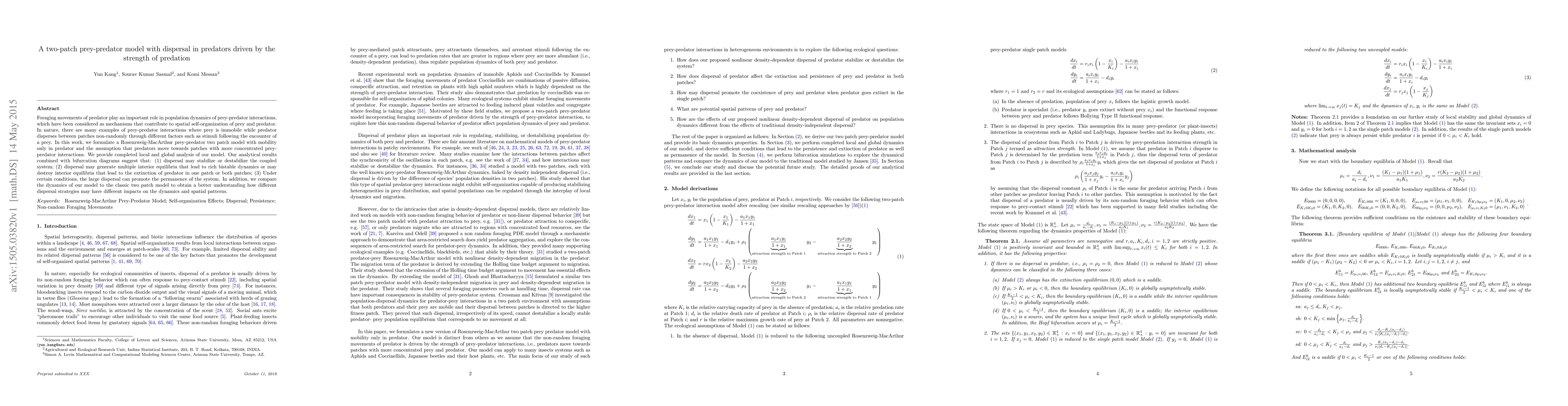 This paper formulates a Rosenzweig-MacArthur prey-predator model in two patches where only predators disperse based on the strength of predation. The study finds that dispersal can stabilize or destabilize the system, generate bistable dynamics, or lead to predator extinction, and under certain conditions, promote system permanence.