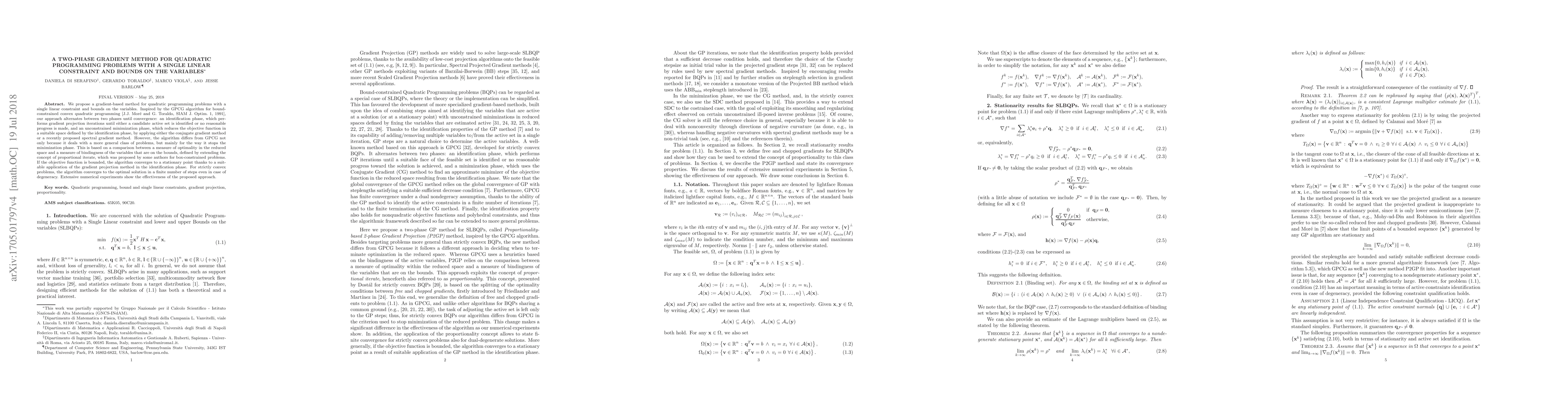 This paper proposes a two-phase gradient method for solving quadratic programming problems with a single linear constraint and variable bounds. The method alternates between gradient projection and unconstrained minimization phases, converging based on a measure of optimality and variable bindingness. The algorithm is shown to be effective through extensive numerical experiments.