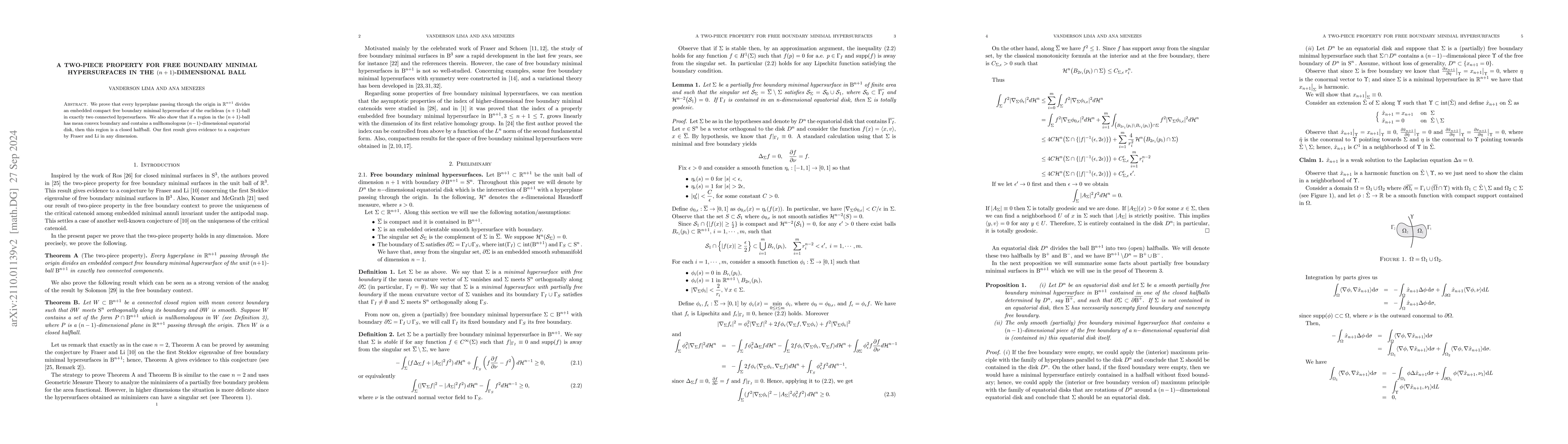 This paper proves that any hyperplane through the origin in $\mathbb{R}^{n+1}$ divides an embedded compact free boundary minimal hypersurface in the $(n+1)$-dimensional ball into exactly two connected components. Additionally, it demonstrates that any region in the $(n+1)$-ball with a mean convex boundary containing a nullhomologous equatorial disk is a closed halfball, supporting a conjecture by Fraser and Li.