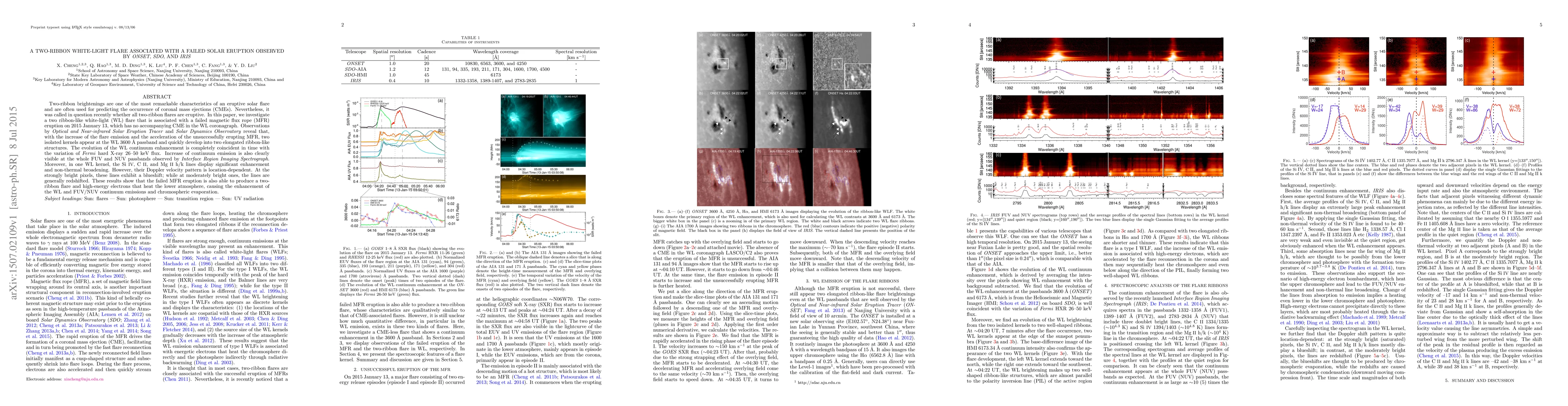 This paper investigates a two-ribbon white-light flare associated with a failed solar eruption on 2015 January 13, observed by ONSET, SDO, and IRIS. Despite the absence of a coronal mass ejection, the flare produced two ribbon-like structures, high-energy electrons, and significant enhancements in white-light and FUV/NUV continuum emissions, indicating chromospheric evaporation.