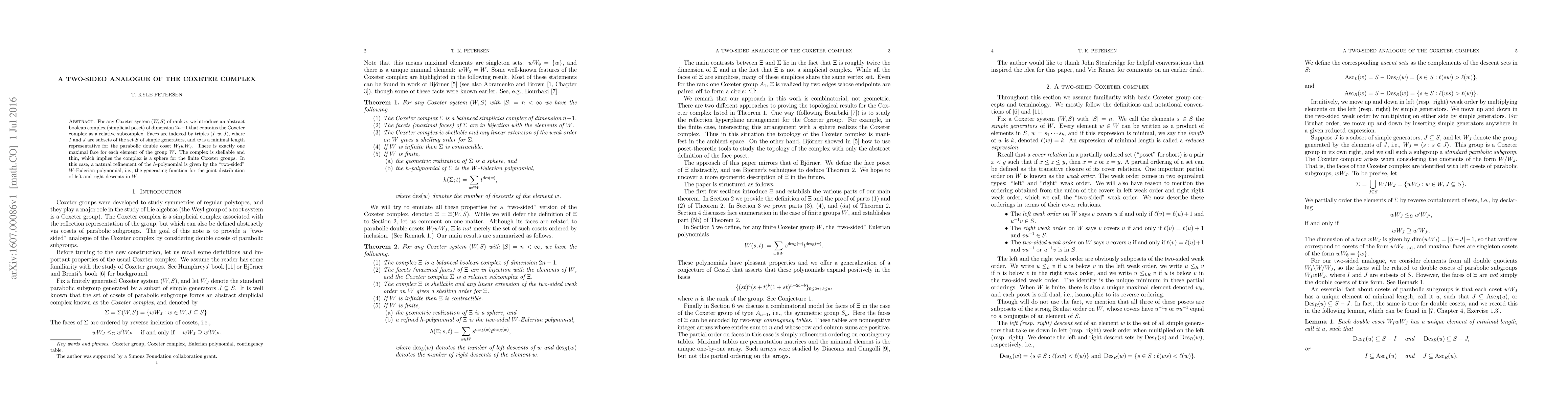For any Coxeter system $(W,S)$ of rank $n$, we introduce an abstract boolean complex (simplicial poset) of dimension $2n-1$ that contains the Coxeter complex as a relative subcomplex. Faces are indexed by triples $(I,w,J)$, where $I$ and $J$ are subsets of the set $S$ of simple generators, and $w$ is a minimal length representative for the parabolic double coset $W_I w W_J$. There is exactly one maximal face for each element of the group $W$. The complex is shellable and thin, which implies the complex is a sphere for the finite Coxeter groups. In this case, a natural refinement of the $h$-polynomial is given by the "two-sided" $W$-Eulerian polynomial, i.e., the generating function for the joint distribution of left and right descents in $W$.