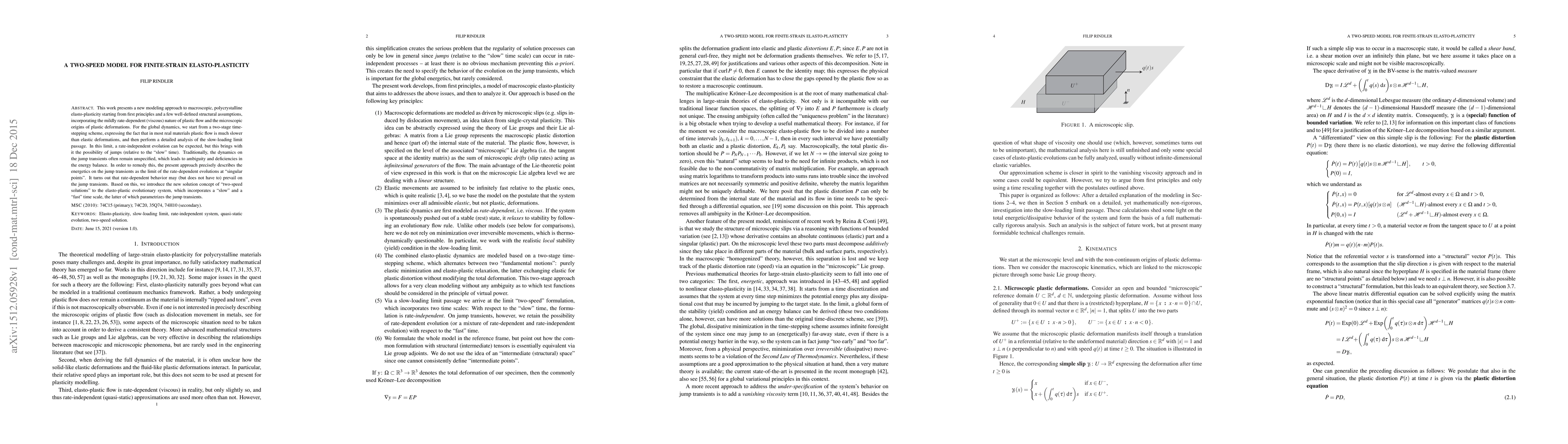 This paper introduces a two-speed model for finite-strain elasto-plasticity, distinguishing between slow plastic flow and faster elastic deformations. It addresses the energetics of jump transients during plastic flow, proposing a new solution concept that captures both rate-dependent and rate-independent behaviors.