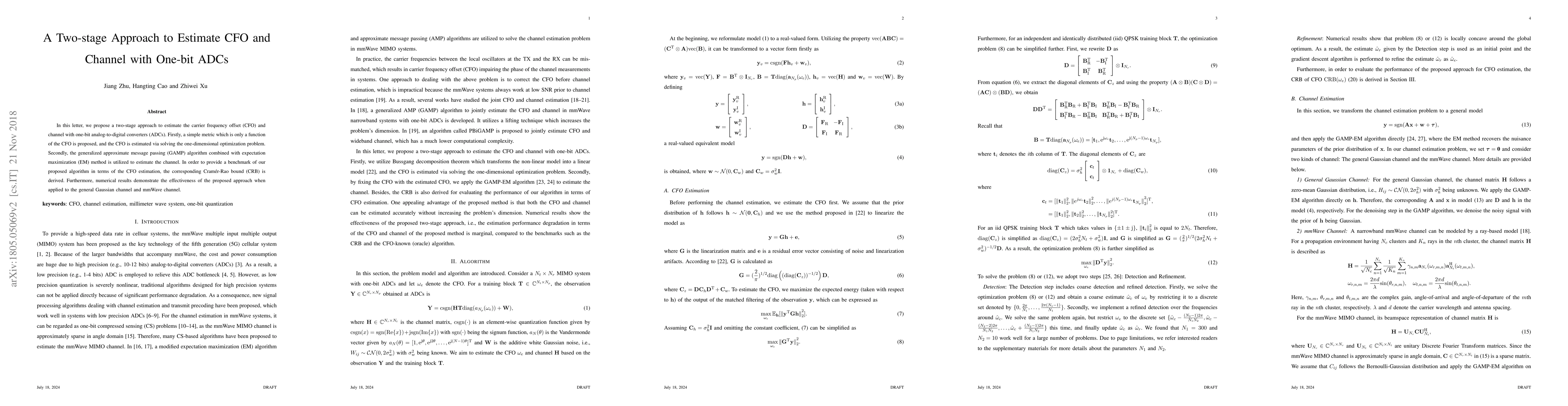 This paper proposes a two-stage method for estimating carrier frequency offset (CFO) and channel in systems using one-bit ADCs. The first stage estimates CFO via a one-dimensional optimization, while the second stage employs GAMP and EM for channel estimation. The method's performance is benchmarked against the Cramér-Rao bound and shown effective for Gaussian and mmWave channels.
