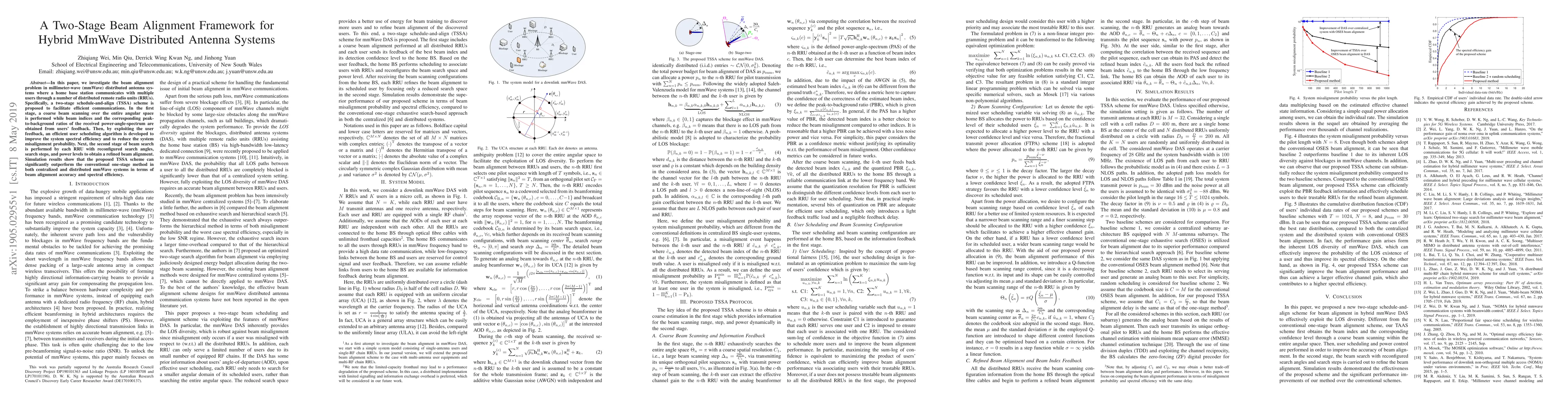 This paper proposes a two-stage beam alignment framework for mmWave distributed antenna systems, utilizing a schedule-and-align scheme to enhance communication efficiency. The two-stage method improves beam alignment accuracy and spectral efficiency compared to conventional one-stage methods.