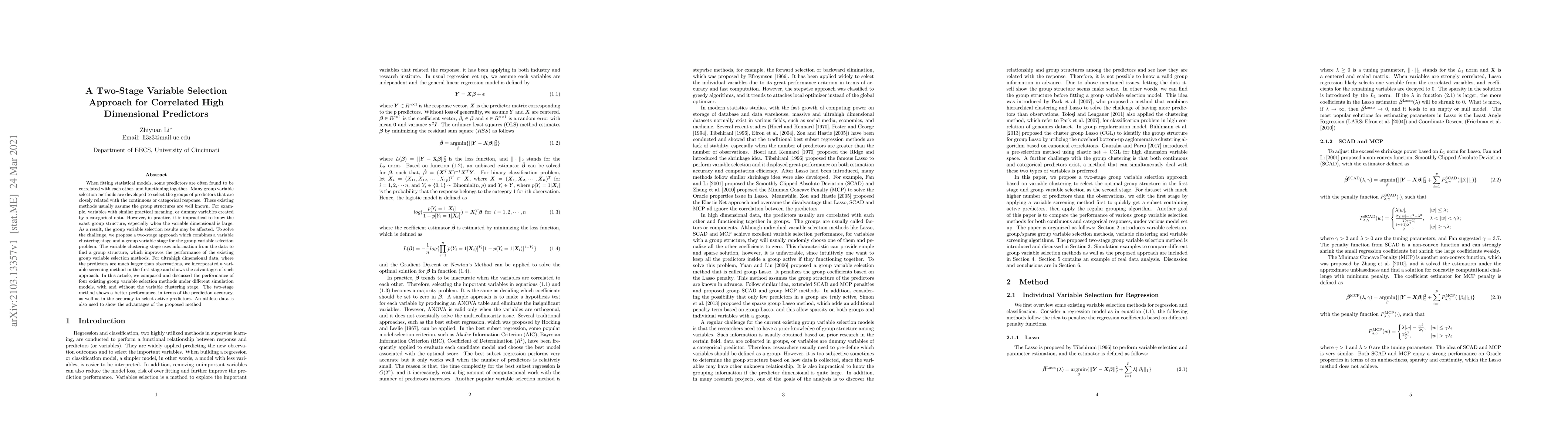 This paper proposes a two-stage variable selection approach to handle correlated high-dimensional predictors, combining variable clustering and group selection methods to improve performance, especially in ultrahigh dimensions. The method outperforms existing techniques in simulations and real data examples.