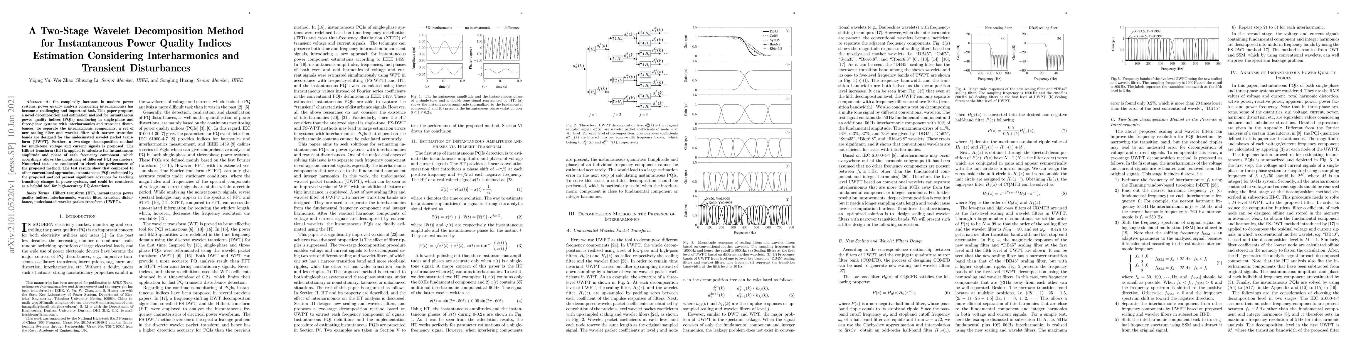 This paper introduces a two-stage wavelet decomposition method using undecimated wavelet packet transform for estimating instantaneous power quality indices in power systems, effectively handling interharmonics and transient disturbances. The method shows superior performance in tracking transitory changes compared to conventional approaches.