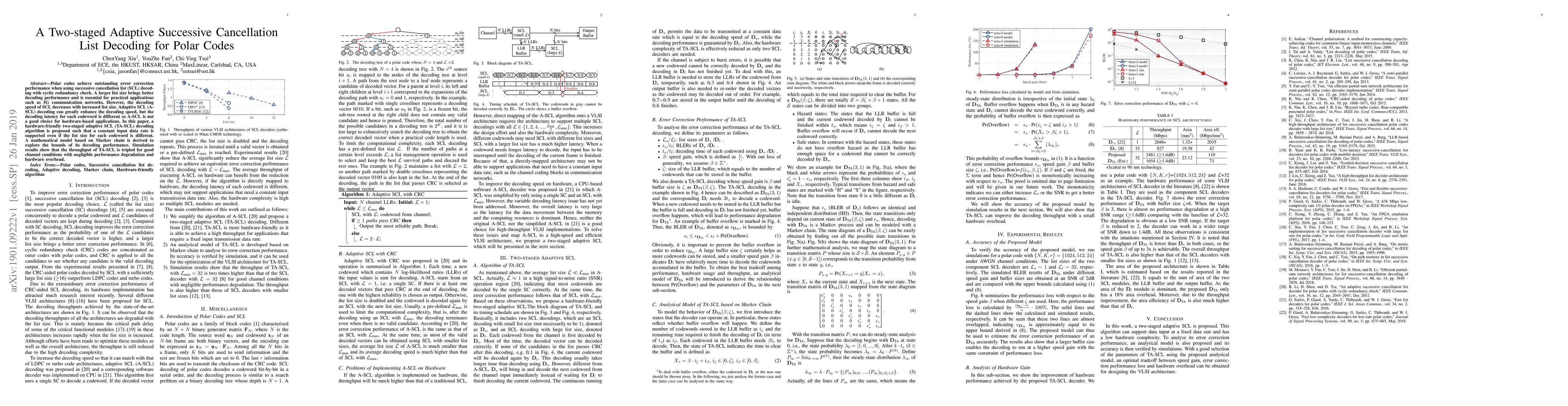 This paper proposes a two-staged adaptive successive cancellation list (TA-SCL) decoding algorithm for polar codes to balance improved error correction performance and decoding speed, supporting constant input data rates despite variable list sizes. Simulation results demonstrate tripled throughput under favorable conditions with minimal performance loss and additional hardware costs.
