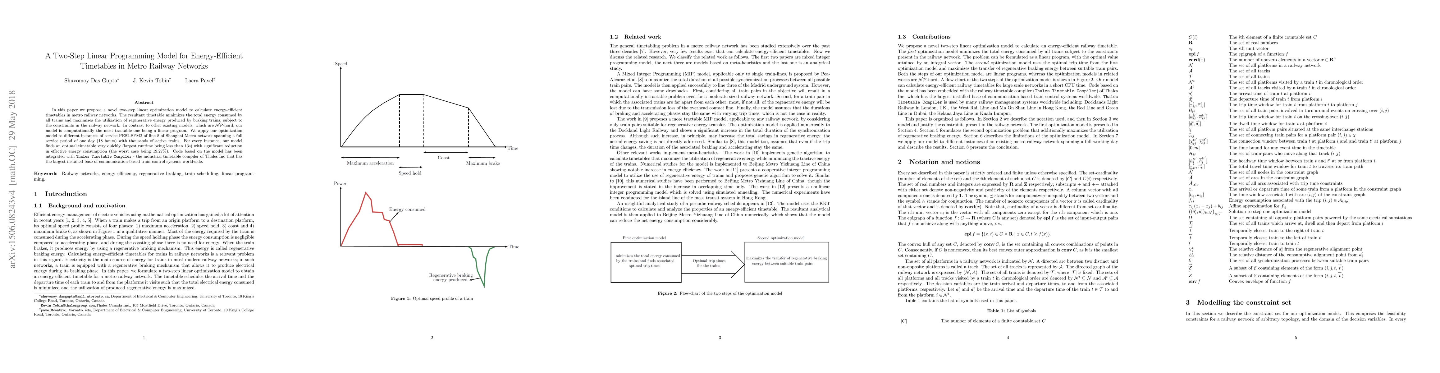 The research proposes a two-step linear optimization model to calculate energy-efficient timetables in metro railway networks, minimizing total energy consumption and maximizing regenerative energy utilization.