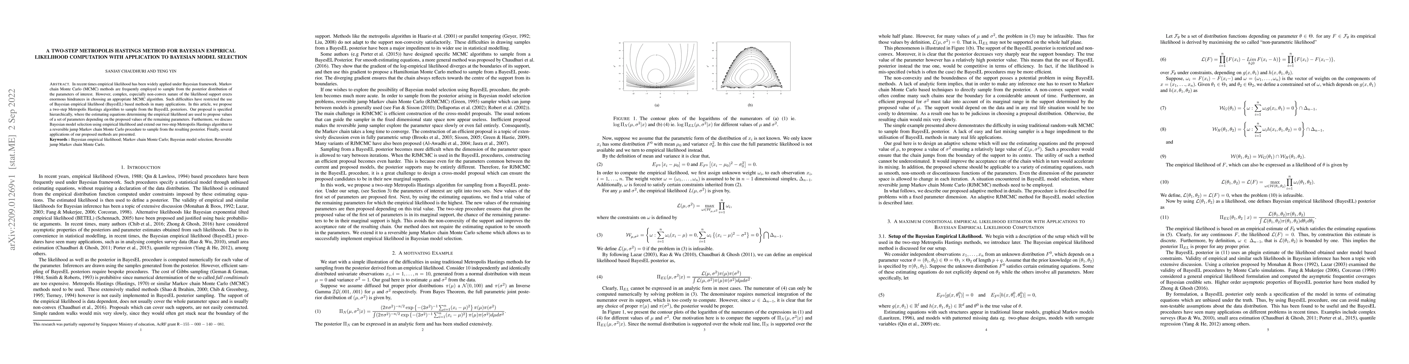 This paper proposes a two-step Metropolis Hastings algorithm to efficiently sample from Bayesian empirical likelihood posteriors, addressing challenges posed by non-convex likelihoods. The method is extended to Bayesian model selection via reversible jump MCMC, demonstrating its application in various scenarios.