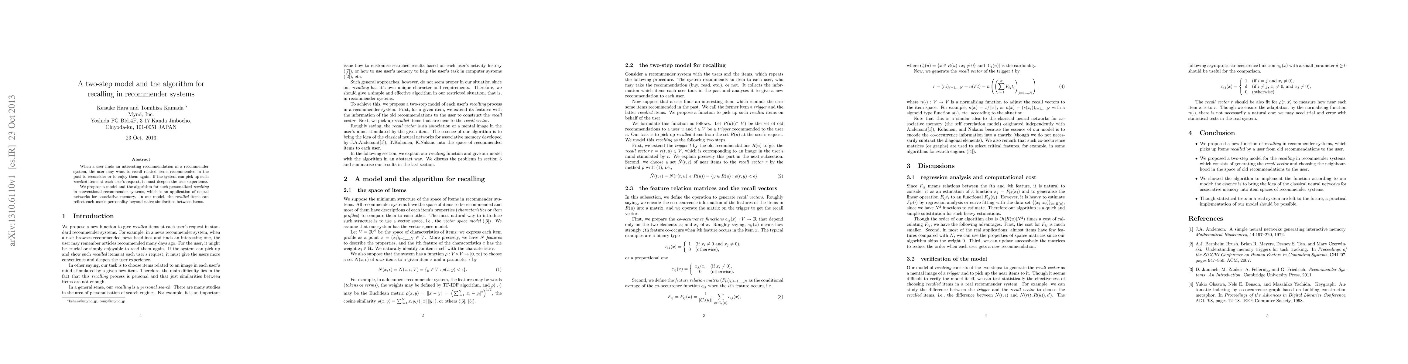 Researchers propose a neural network-based model for personalized 'recalling' of recommended items in recommender systems, enabling users to recall past items based on their individual preferences.