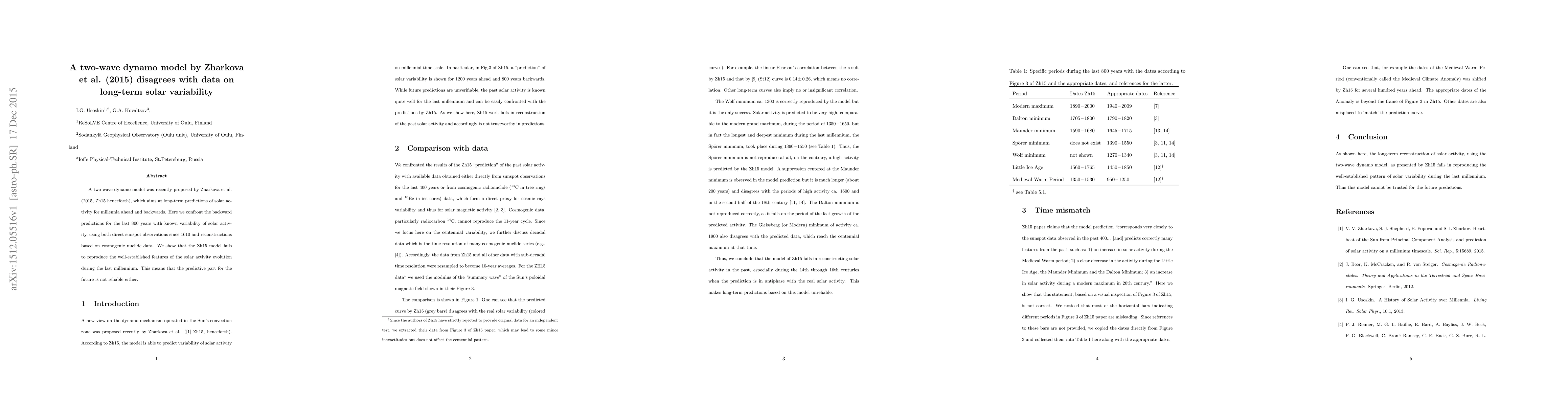 A two-wave dynamo model was recently proposed by Zharkova et al. (2015, Zh15 henceforth), which aims at long-term predictions of solar activity for millennia ahead and backwards. Here we confront the backward model predictions for the last 800 years with known variability of solar activity, using both direct sunspot observations since 1610 and reconstructions based on cosmogenic radionuclide data. We show that the Zh15 model fails to reproduce the well-established features of the solar activity evolution during the last millennium. This means that the predictive part for the future is not reliable either.