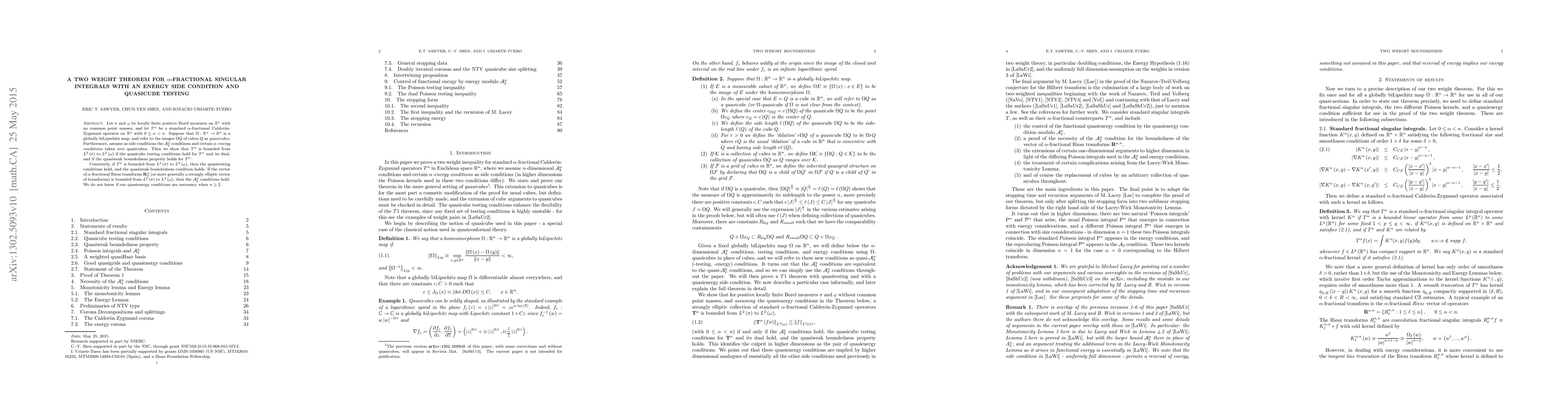 Summary: This paper establishes a two weight theorem for fractional singular integrals under energy side conditions on the weights, with testing conditions applied over quasicubes, which are biLipschitz images of cubes. The result extends the classical theory to higher dimensions.