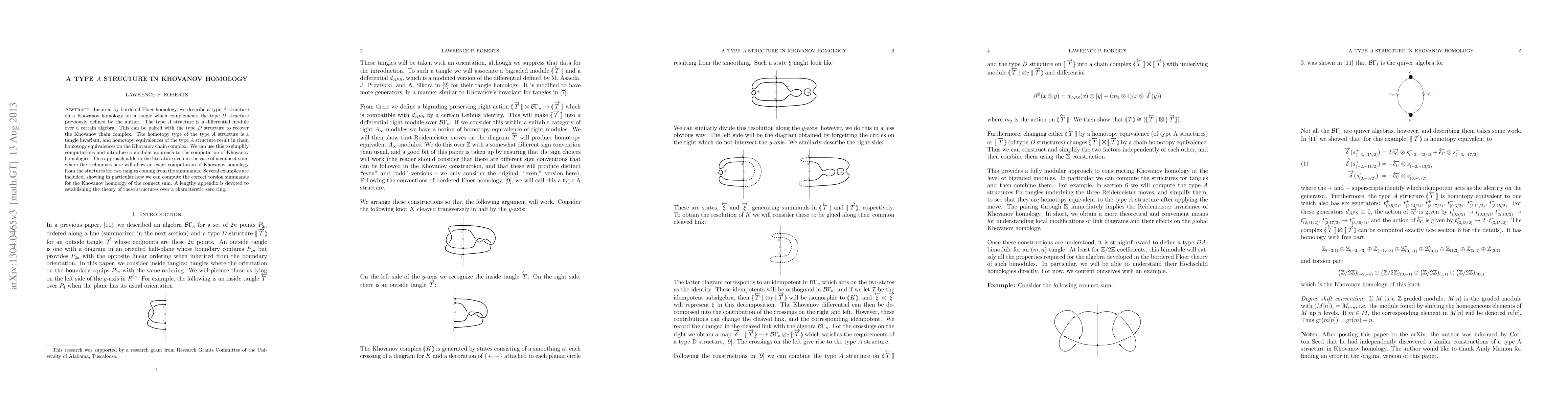 Inspired by bordered Floer homology, we describe a type A structure on a Khovanov homology for a tangle, which complements the type D structure in a previous paper. The type A structure is a differential module over a certain algebra. This can be paired with the type D structure to recover the Khovanov chain complex. The homotopy type of the type A structure is a tangle invariant, and homotopy equivalences of the type A structure result in chain homotopy equivalences on the Khovanov chain complex. We can use this to simplify computations and introduce a modular approach to the computation of Khovanov homologies. This approach adds to the literature even in the case of a connect sum, where the techniques here will allow an exact computation of Khovanov homology from the structures for two tangles coming from the summands. Several examples are included, showing in particular how we can compute the correct torsion summands for the Khovanov homology of the connect sum. A lengthy appendix is devoted to establishing the theory of these structures over a characterstic zero ring.
